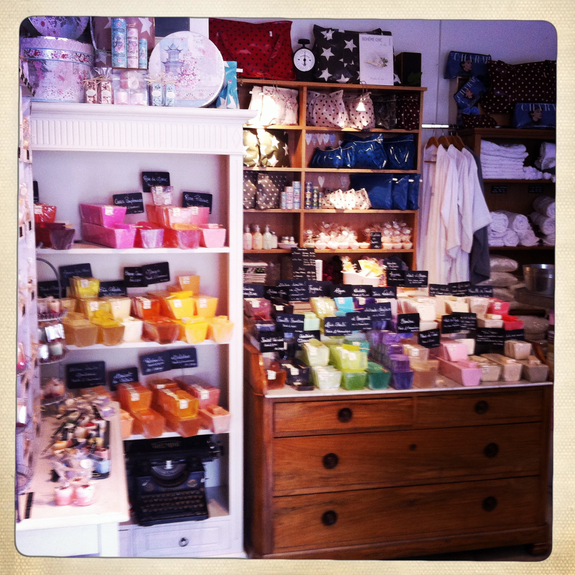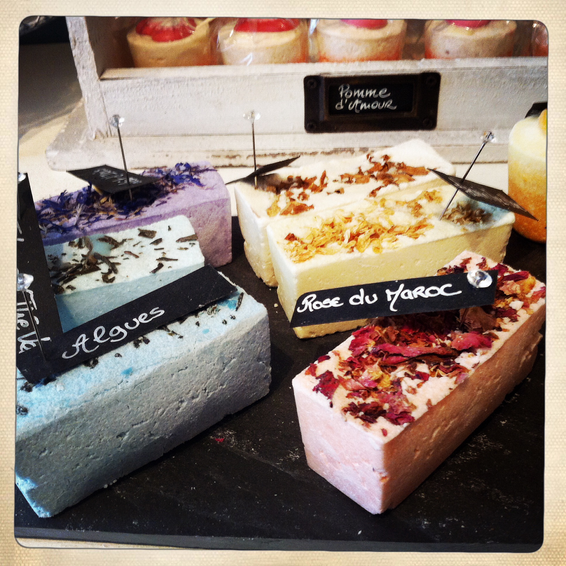 Et puis surtout… ça sent bon! Et c’est quand même le plus important! Des odeurs par dizaines! Des plus classiques comme rose du Maroc, verveine citronnée ou encore lavande, aux odeurs les plus surprenantes telles malabar, giroflier tonka ou feuille de tomate. Toutes les senteurs ont été développées par une parfumeuse à Grasse. Et diantre! ça sent déja bon dans la rue! On a envie de tout sentir et surtout de tout ramener à la maison!