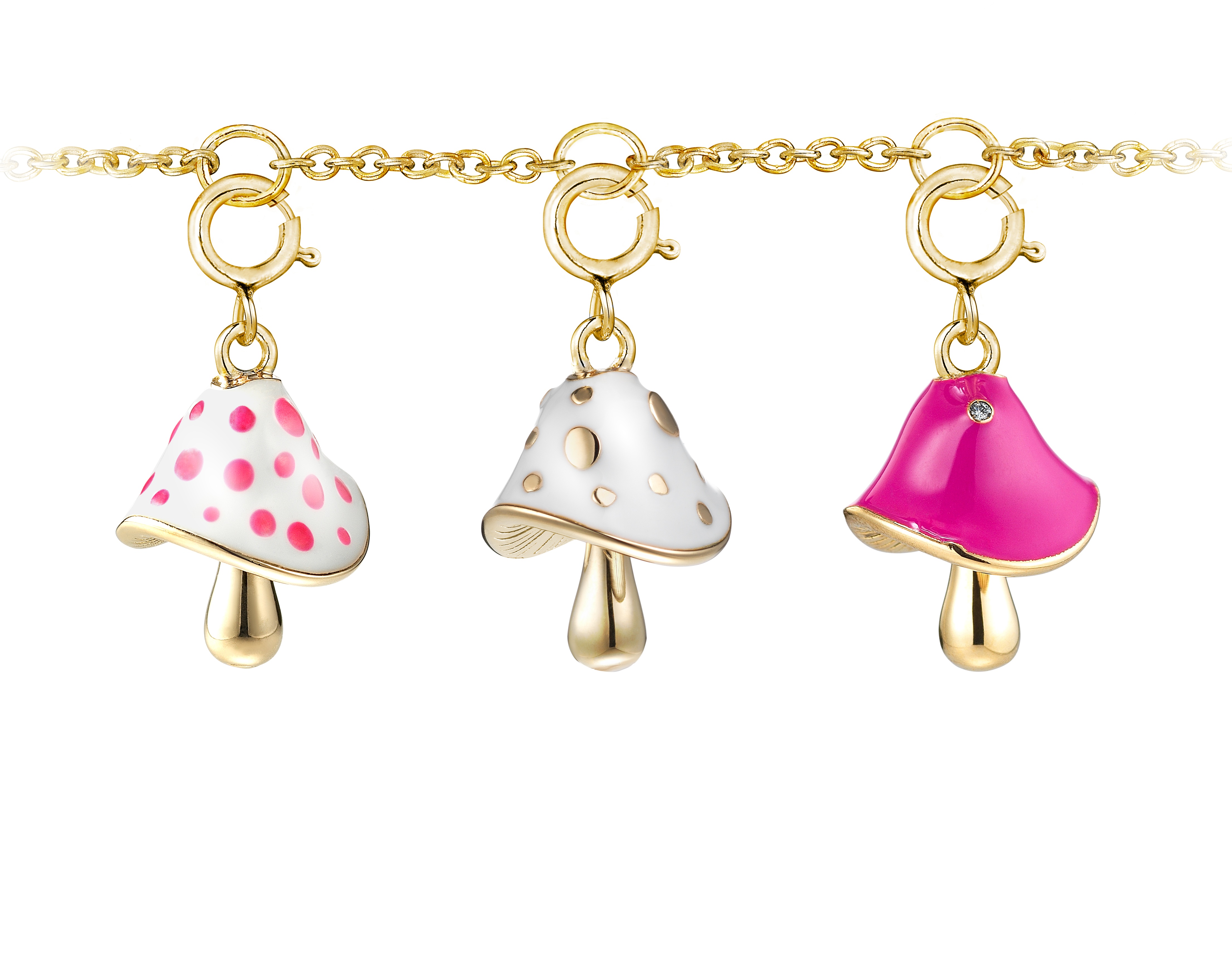 Ces breloques ont été pensées pour orner une chaine, mais aussi un bracelet, une bague ou des boucles d’oreille. Les fermoirs ont ainsi été développés et adaptés afin que vous puissiez alterner les champignons au gré de vos humeurs et de vos tenues en jouant avec les couleurs et les matières.