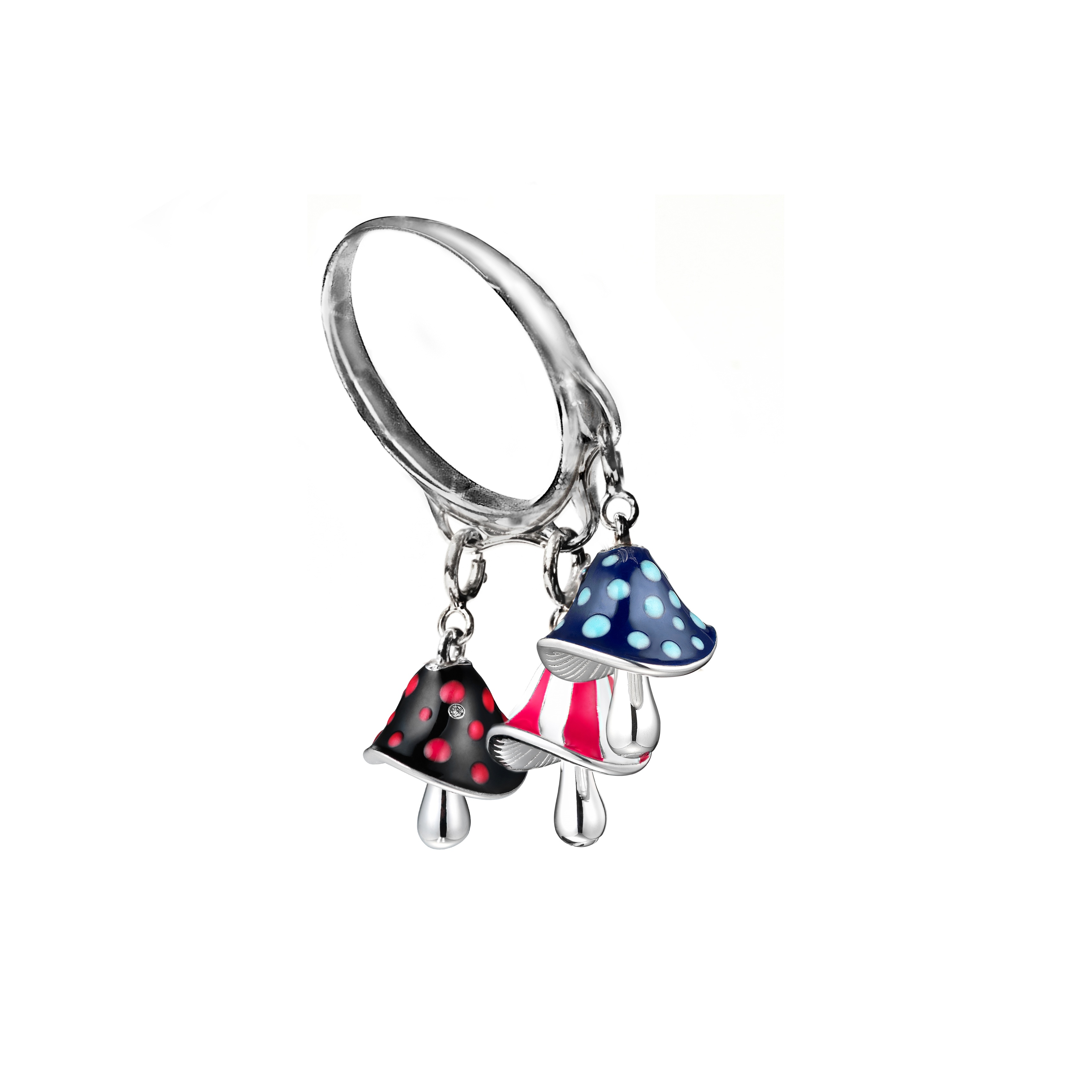 Et pour ceux qui trouveraient ces breloques trop petites, il existe un pendentif d’une taille supérieure. Creux ou pleins, ces champignons se déclinent, cette fois, uniquement sertis de pierres fines et précieuses.