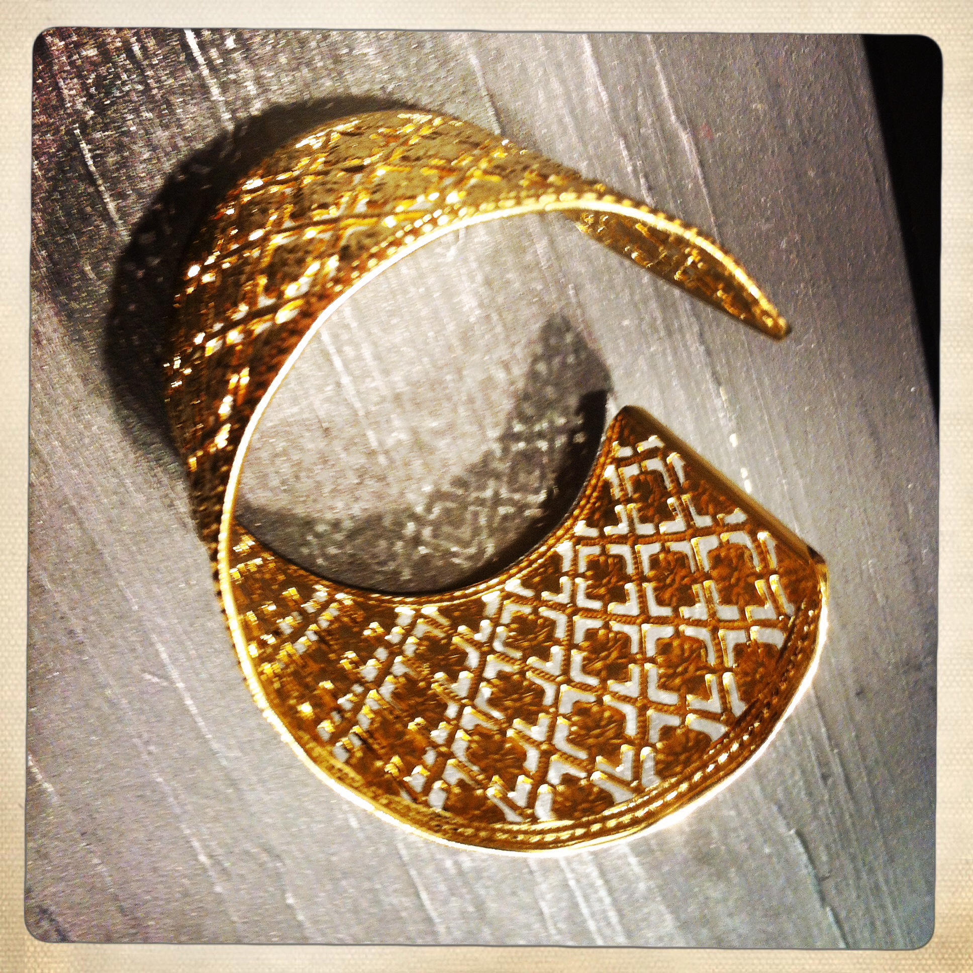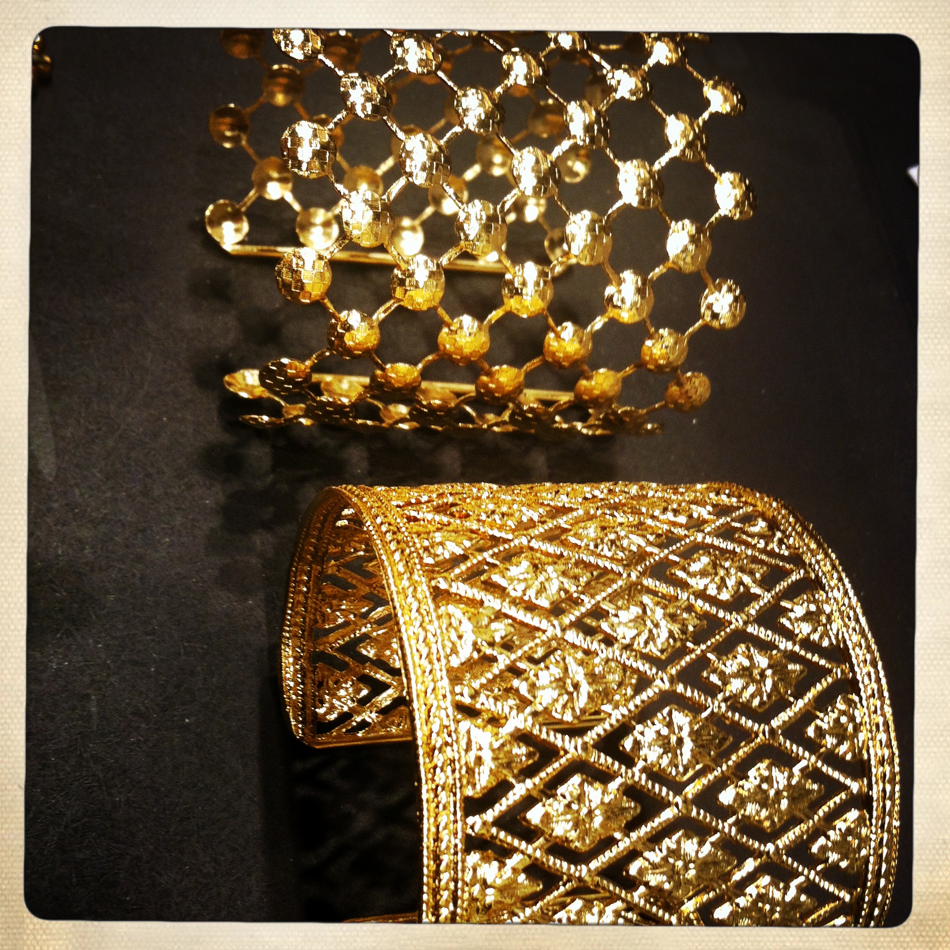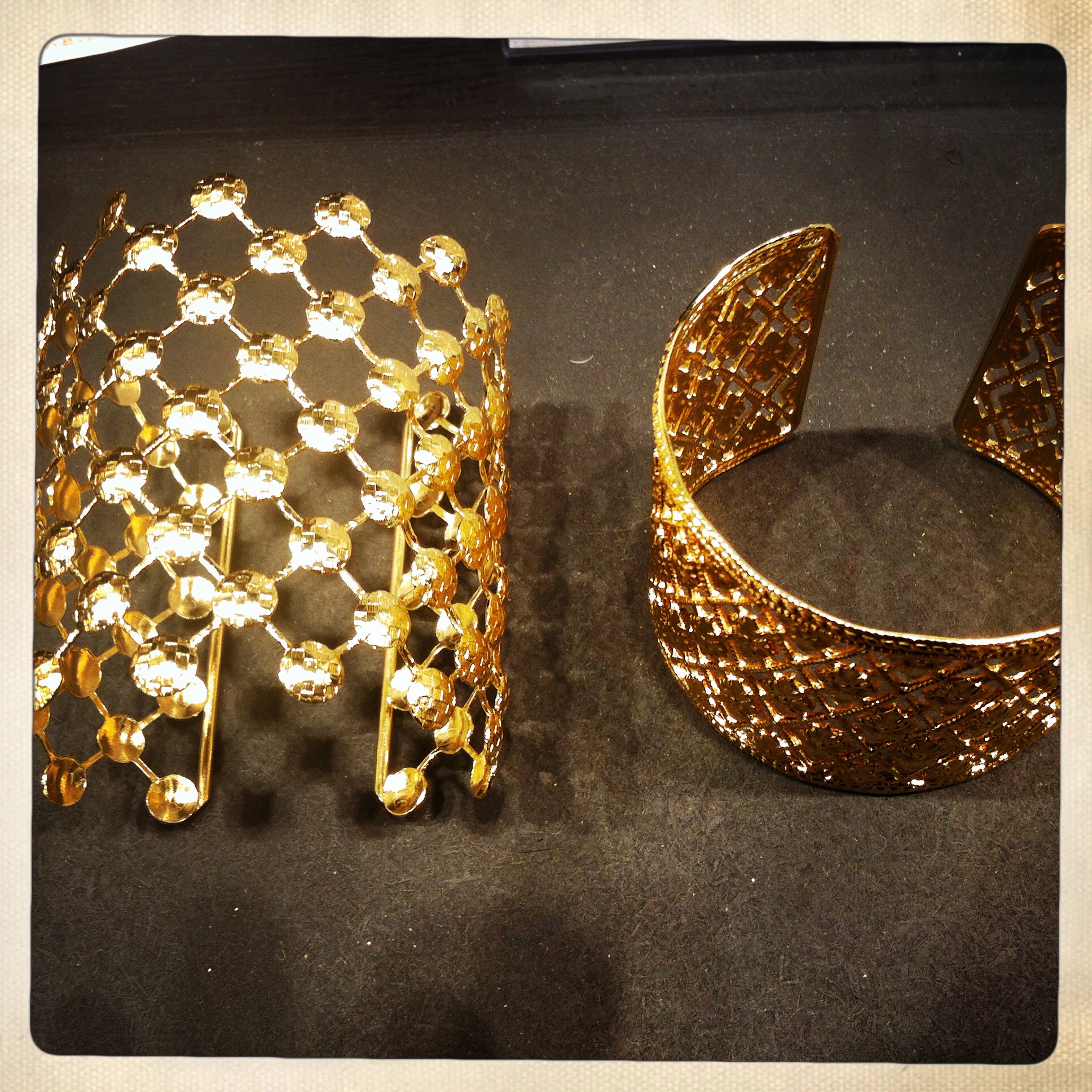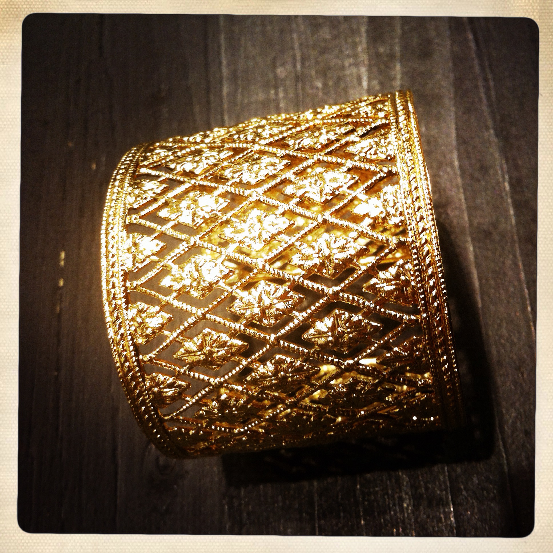 Vous l’aurez certainement compris grâce aux photos, mon cœur bat pour les manchettes de cette collection et j’ai décidé de focaliser mon attention sur ces deux produits que je trouve particulièrement réussis. Ces deux bracelets ont un design assez distincts, mais se rapprochent par leurs styles vintage que ce soit la manchette Impératrice ou celle avec le motif clouté Henri VIII. Les deux modèles sont réalisés en métal puis recouvert d’or 24 carats. Ils sont extrêmement souples et ajustables sur n’importe quel poignet.