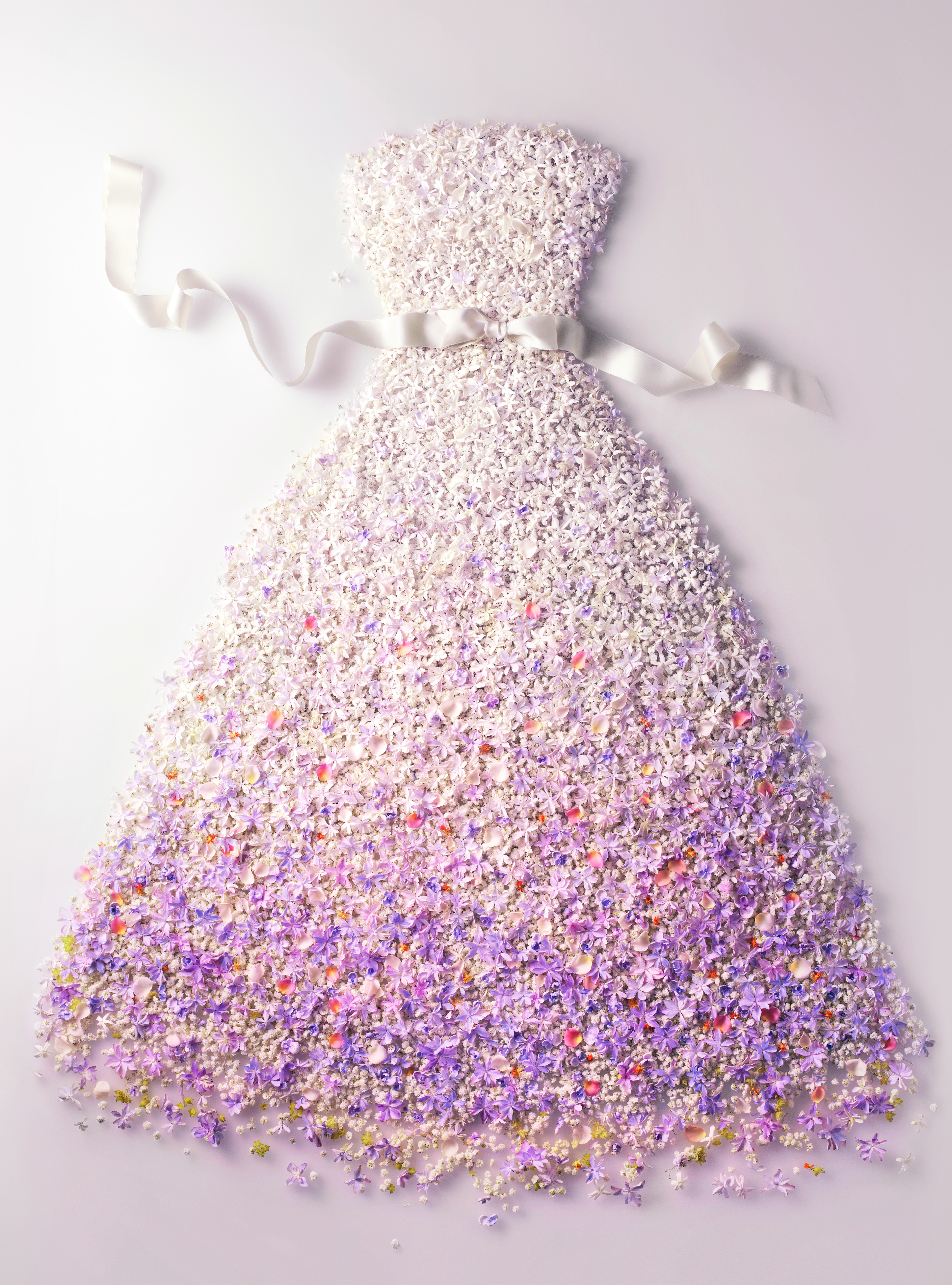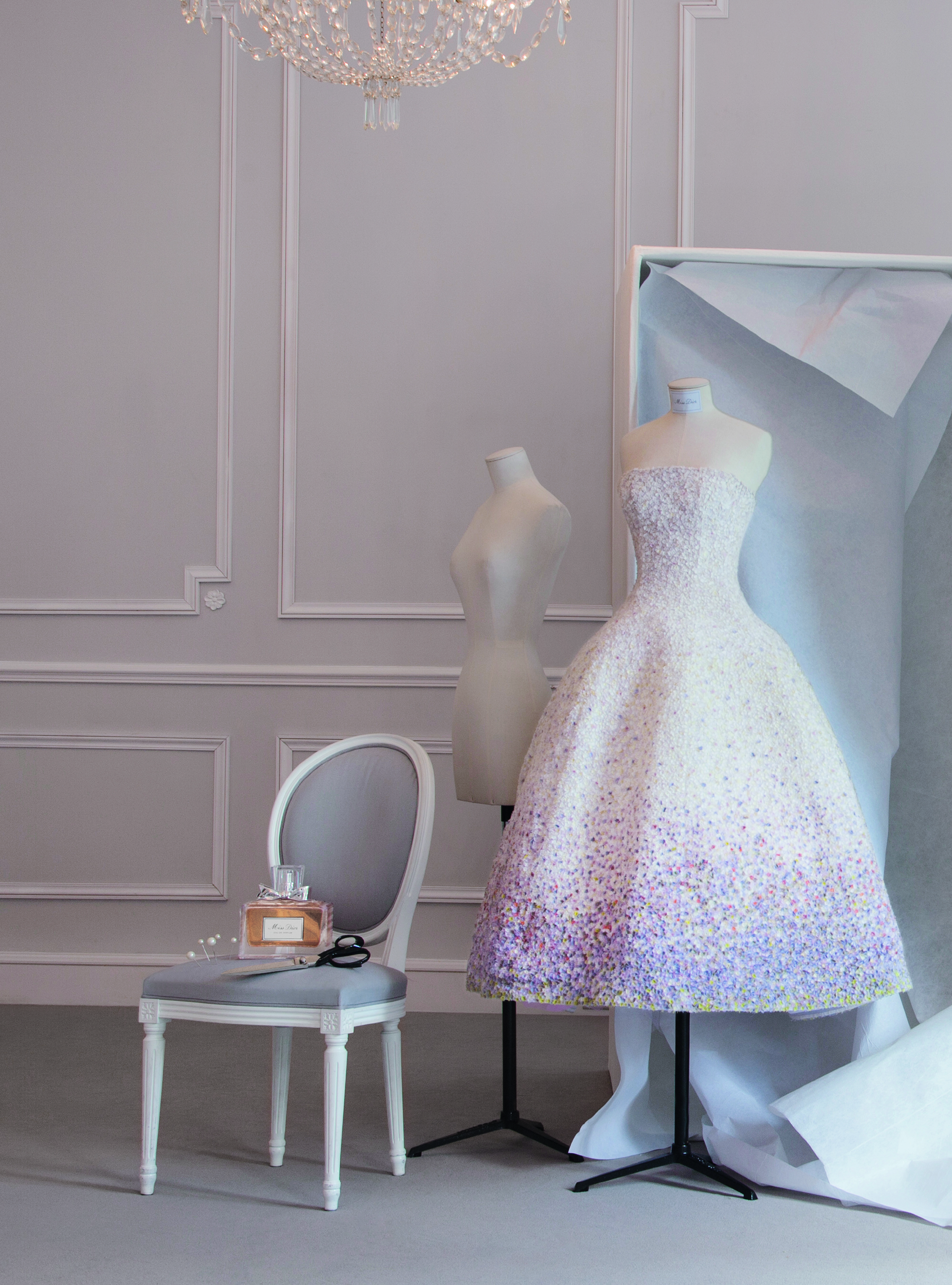 Et pour boucler la boucle et faire rêver les princesses qui se cachent au fond de nous, une robe bouquet, du même nom, a été créée en hommage à la collection « Trompe-l’œil » de 1949. Un robe ornée de millions de pétales brodés, qui semblent confirmer que le printemps est bien arrivé.