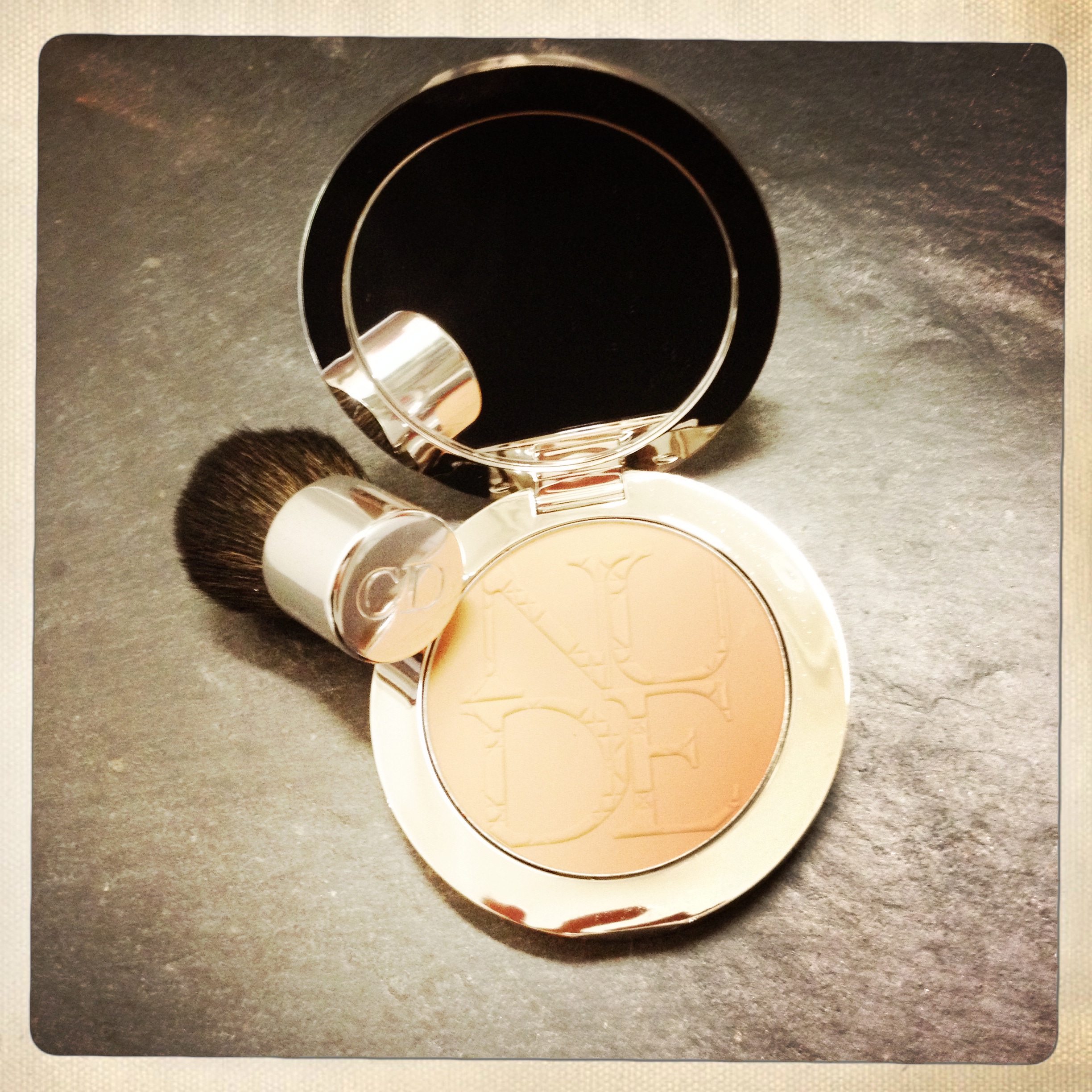 J’ai donc choisi de vous présenter le poudre effet soleil de Dior, car elle a la particularité d »être mate. Pourquoi une poudre mate? Mais pour un effet naturel, bien sûr! Car la mélanine n’est jamais irisée. Ben oui… à quoi ça sert d’avoir l’air bronzé, si tout le monde voit que ce n’est pas vrai? Non! le but est d’avoir un peu plus que bonne mine, surtout en début de saison. Mais attention à la pose de la poudre soleil: n’oubliez pas d’en mettre sur le cou et le buste, sinon l’effet col roulé est garantie.