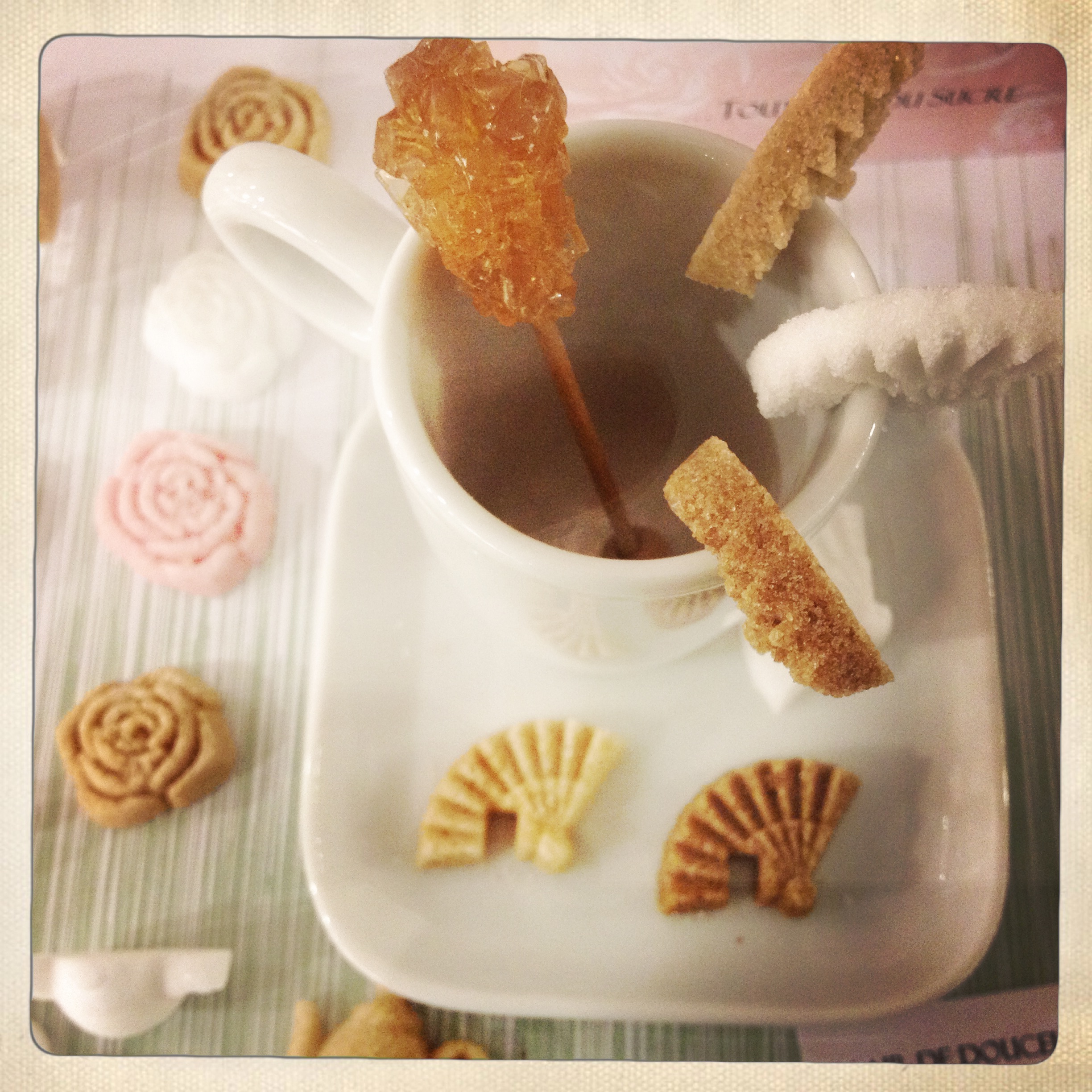 Mais la vraie question est: comment manger une chose d’aussi jolie? Est-ce que vraiment possible? Je n’en suis pas sûre! C’est dommage quand même! Je pense que je vais continuer à regarder toutes ces jolies créations encore un moment… avant de les dissoudre dans mon thé!