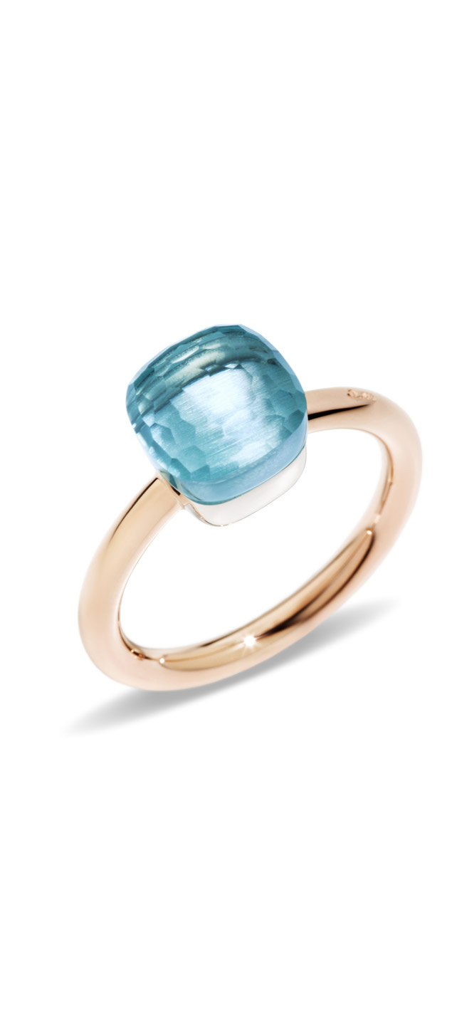 Pour débuter, re-situons le tout! En 2001, Pomellato lance sa collection Nudo. Cette bague apparaît alors comme une création atypique grâce à cet anneau d’or au design épuré qui met en valeur une des multiples pierres fines de la collection. Pomellato signe ainsi ce qui fera le succès de sa marque. Un telle réussite que cette bague sera déclinée en taille maxi avant d’arriver au modèle qui nous intéresse: le Petit!