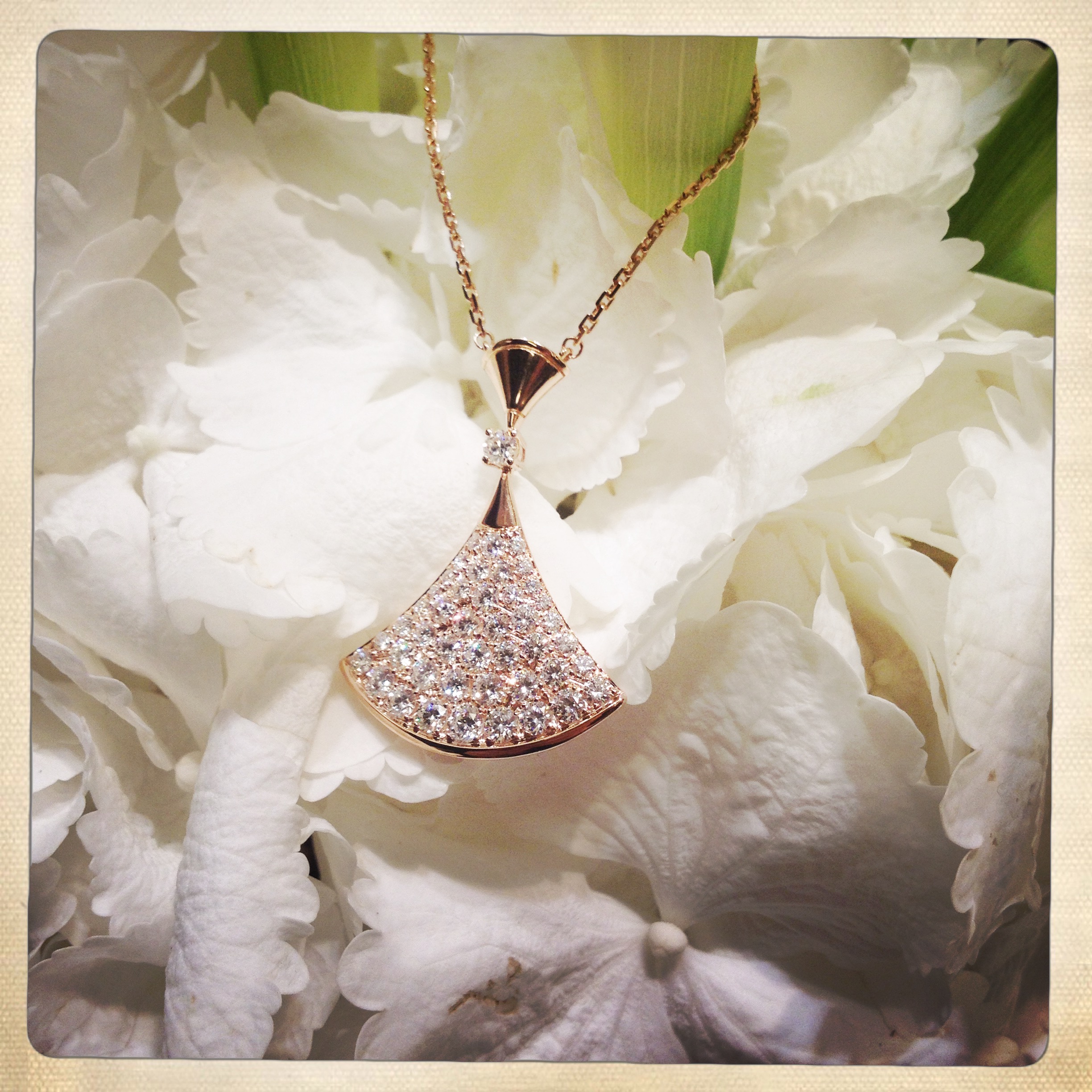 Bulgari donne à ses pendentifs une forme d’éventails en réinterprétant les motifs des célèbres mosaïques des thermes de Caracalla qui ont été construit en 216 après J-C. à Rome. La maison italienne rend ainsi hommage à ses origines!