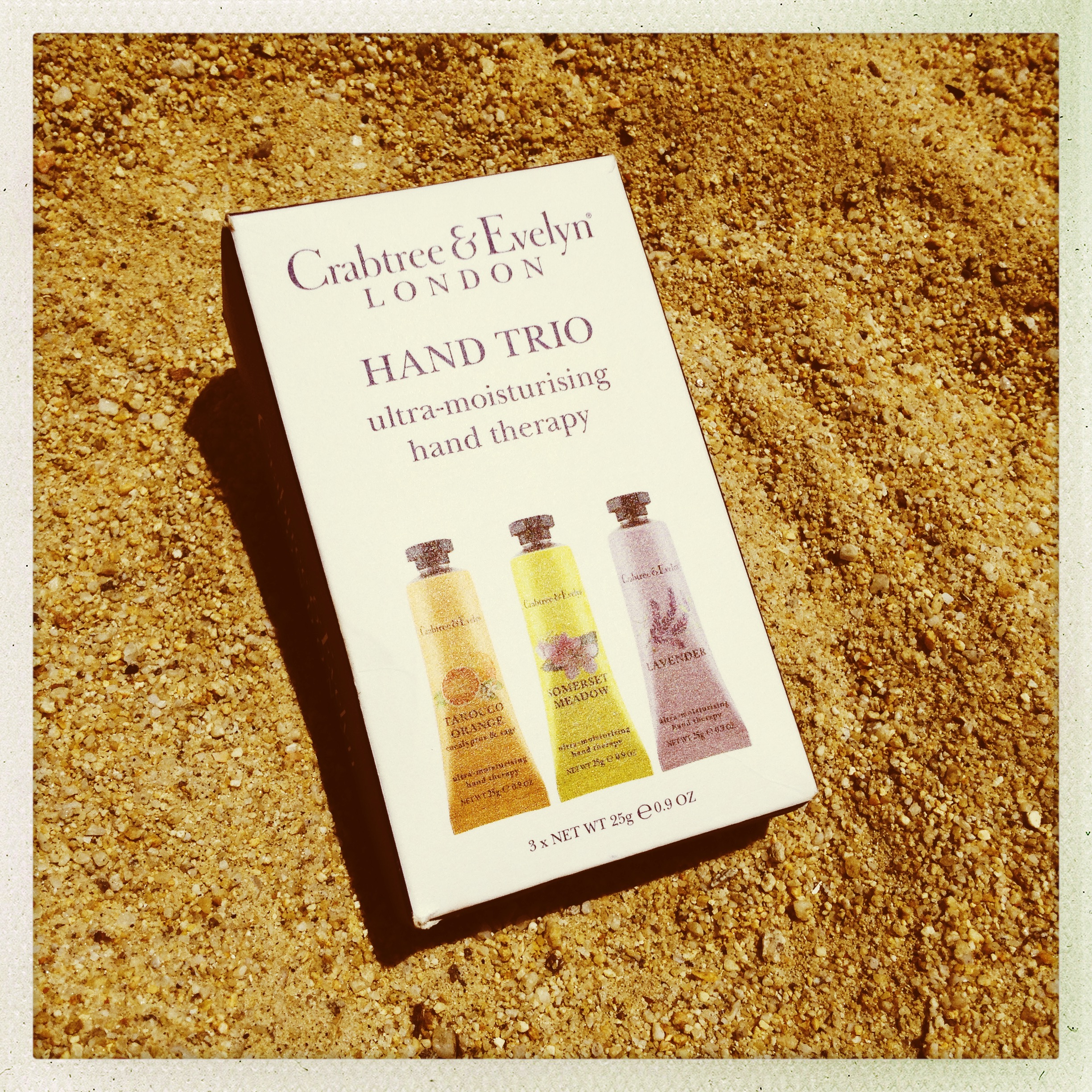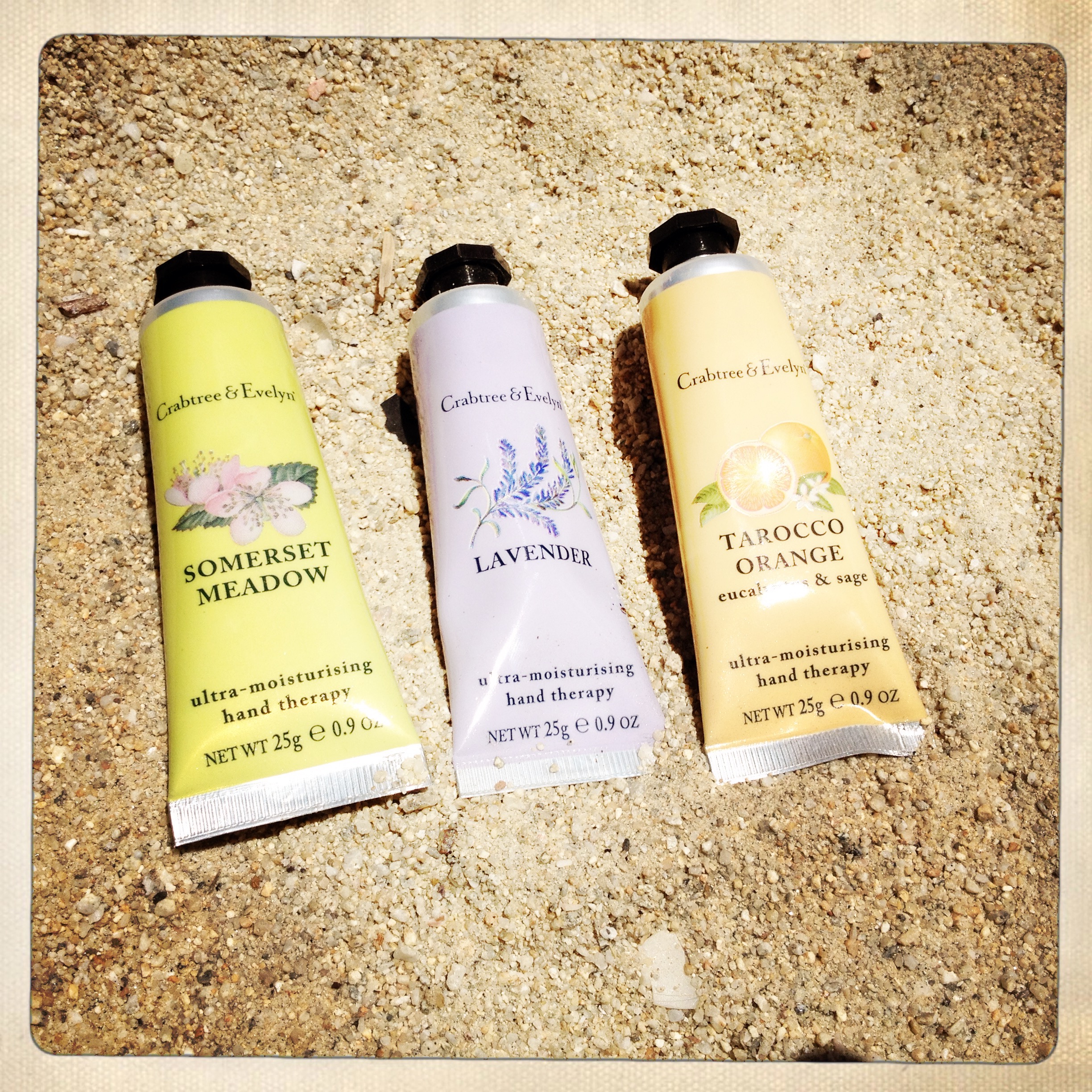 Quand on part en vacances à la plage, le problème majeur, c’est le sable! Oui, oui, je sais bien qu’on va à la plage pour cela, mais quand même ces petits bouts de planète sont des coquins qui ne pensent qu’à se faufiler partout: sac, habit, cheveux et tous types de tubes de crème! Alors vous me direz: qui prends sa crème pour les mains à la plage?? Ben moi! et pour ne pas abimer mes tubes et les transformer en peeling, j’ai opté pour les tubes en petit format de la marque britannique Crabtree & Evelyn – histoire de n’en abimer qu’un seul!