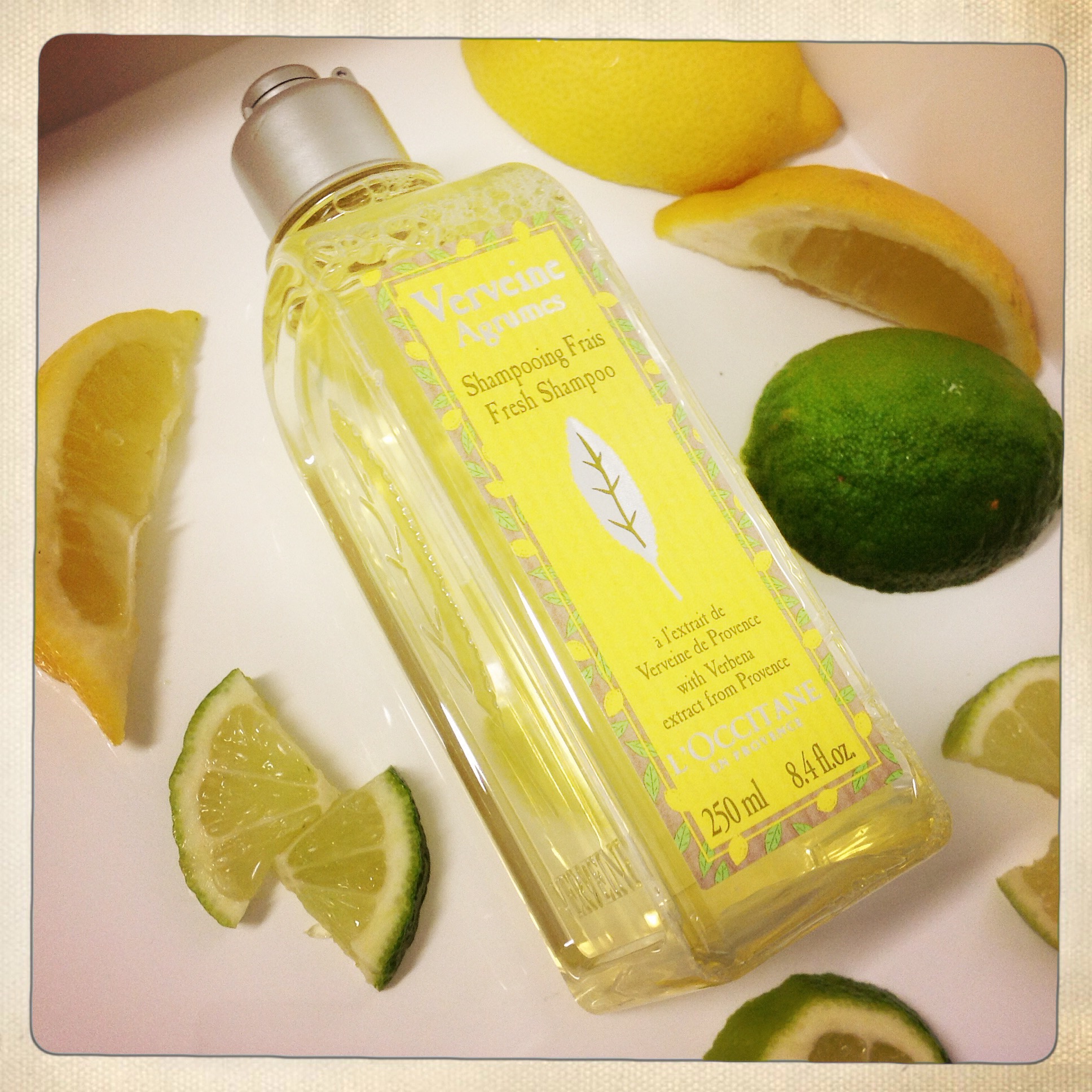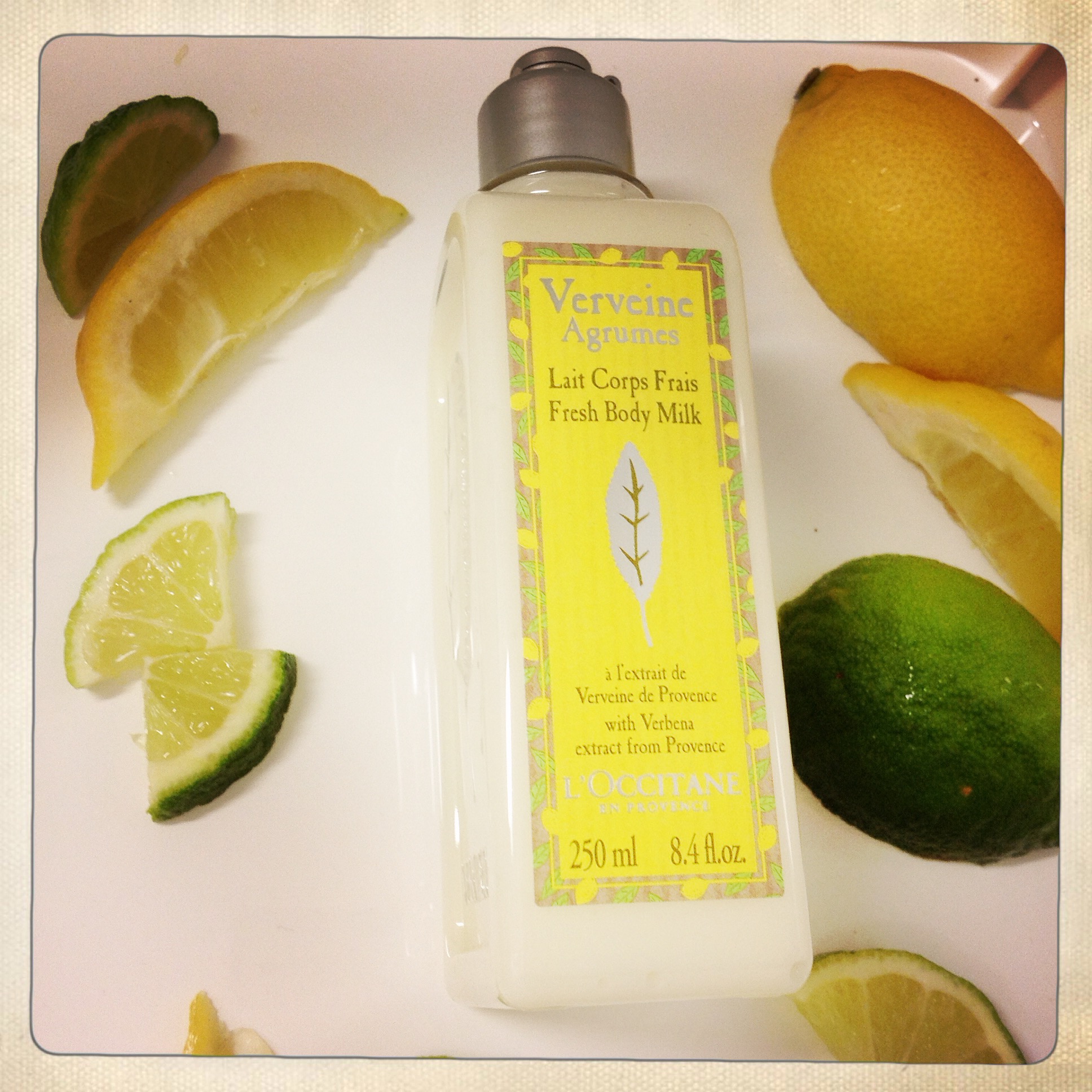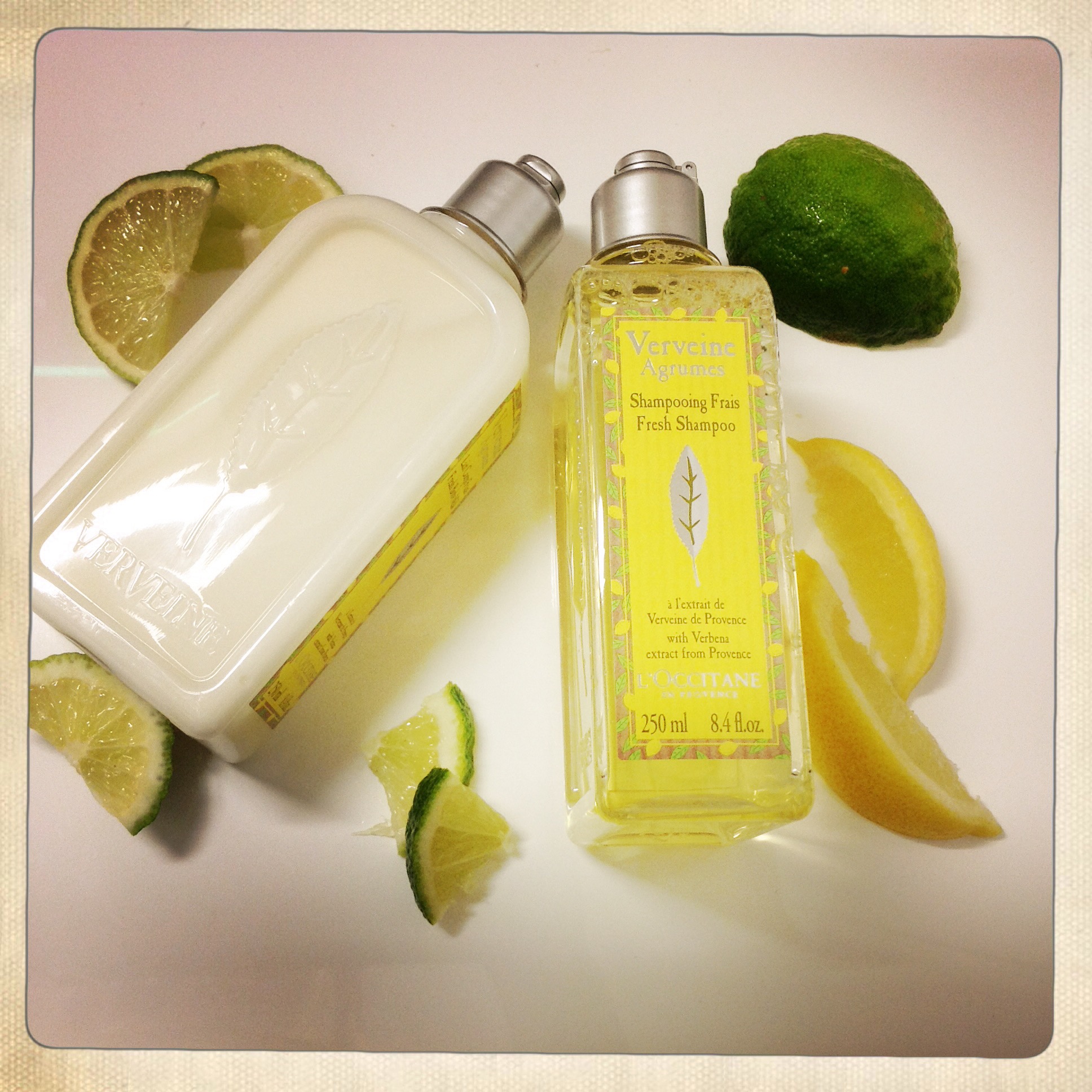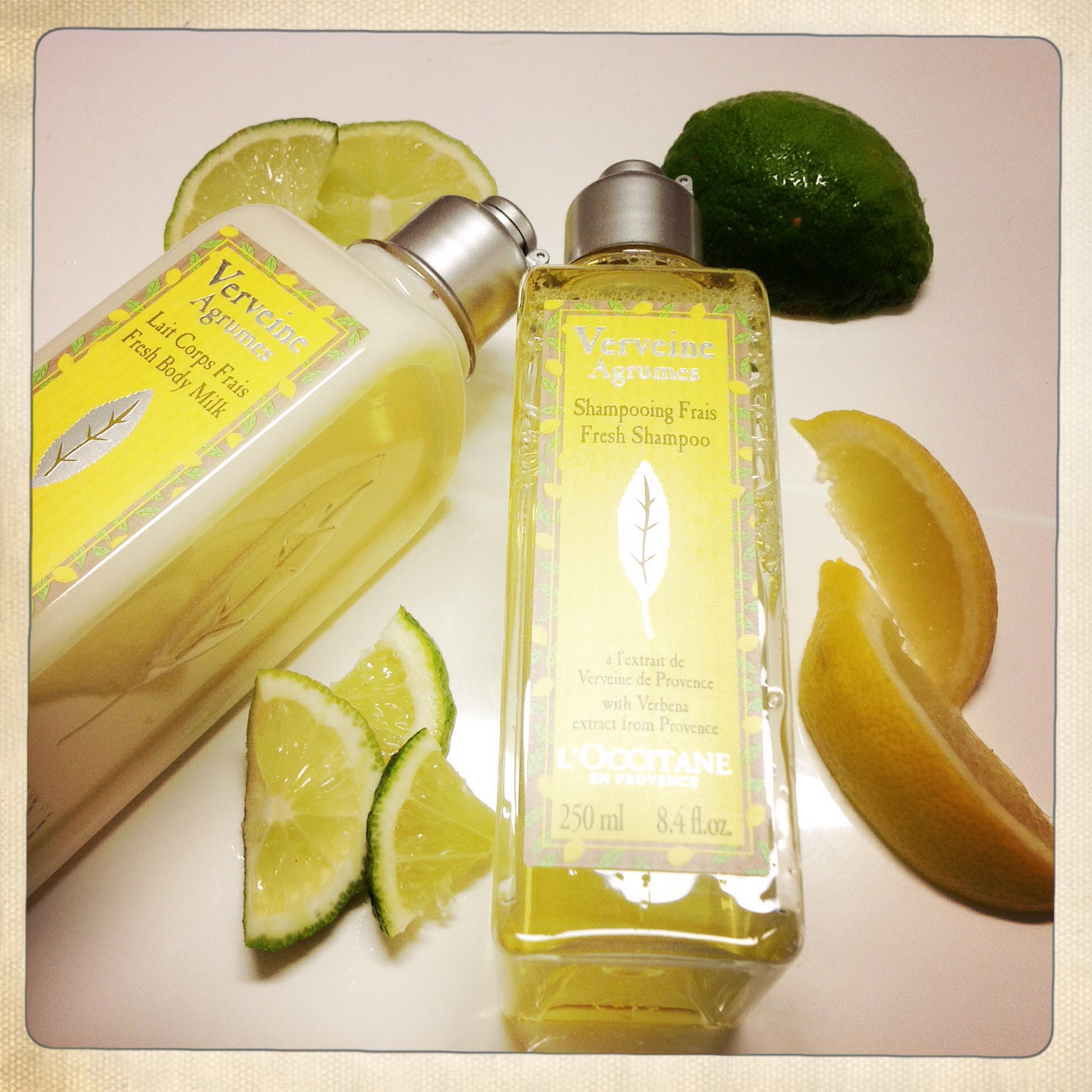 J’ai chaud!!! J’ai trop chaud!!! Même si je suis la première à dire qu’après l’été 2014, on n’a pas vraiment le droit de se plaindre, je ne peux rien y faire… mon système nerveux se trémousse et hurle à la mort! J’ai trop chaud! Alternative 1: partir dans un endroit où il fait frais. Alternative 2: me plonger dans le lac et ne plus en sortir. Alternative 3: prendre des douches et des re-douches. C’est cette dernière solution que j’ai choisie, mais pas avec n’importe quels soins, avec ceux de l’Occitane, senteur Verveine-agrumes!