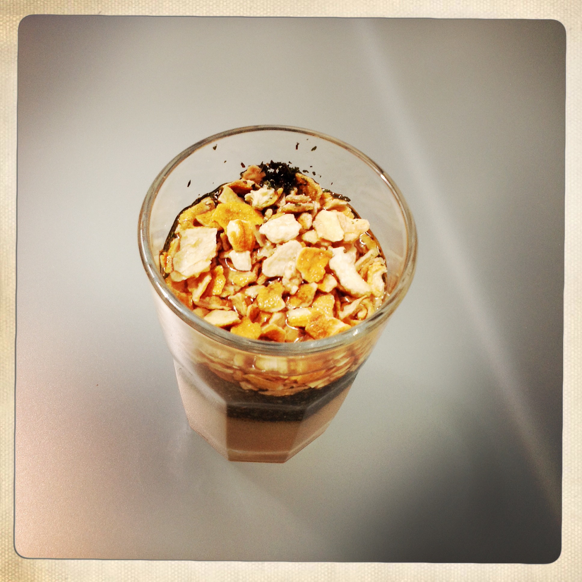 Dans le mélange, on verse le rhum et hop… on laisse macérer au moins deux heures. Personnellement, j’ai versé le rhum dans le verre directement, mais si c’était à refaire, je verserai le tout dans un récipient plus grand, car il a été difficile de récupérer le rhum après.