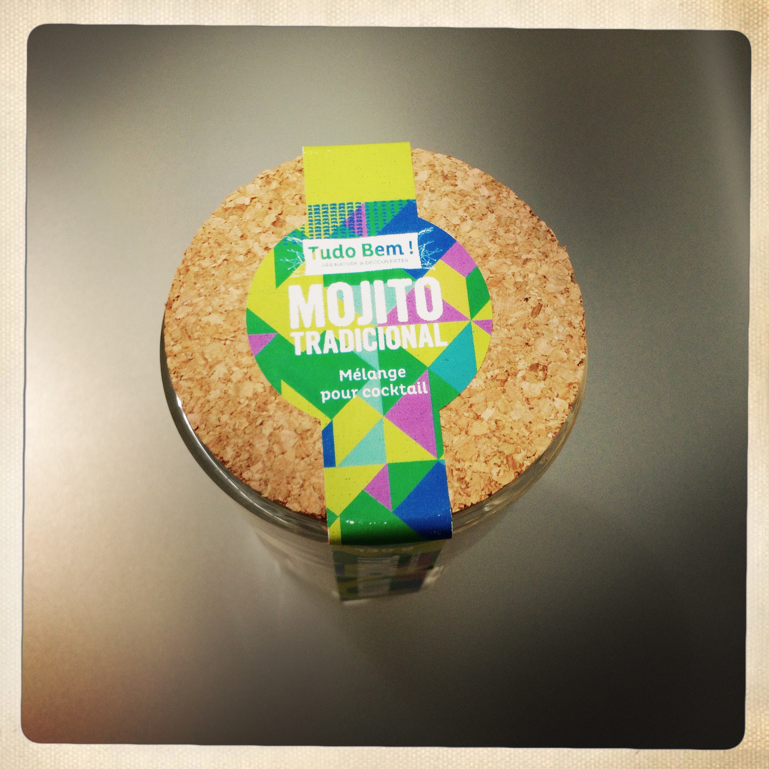 Pour réussir cette opération, il faut un kit et du rhum! Facile quoi! Dans le kit, il y a du sucre de canne, de la menthe séchée et de l’écorce de citron séché également, le tout présenté dans un grand verre.