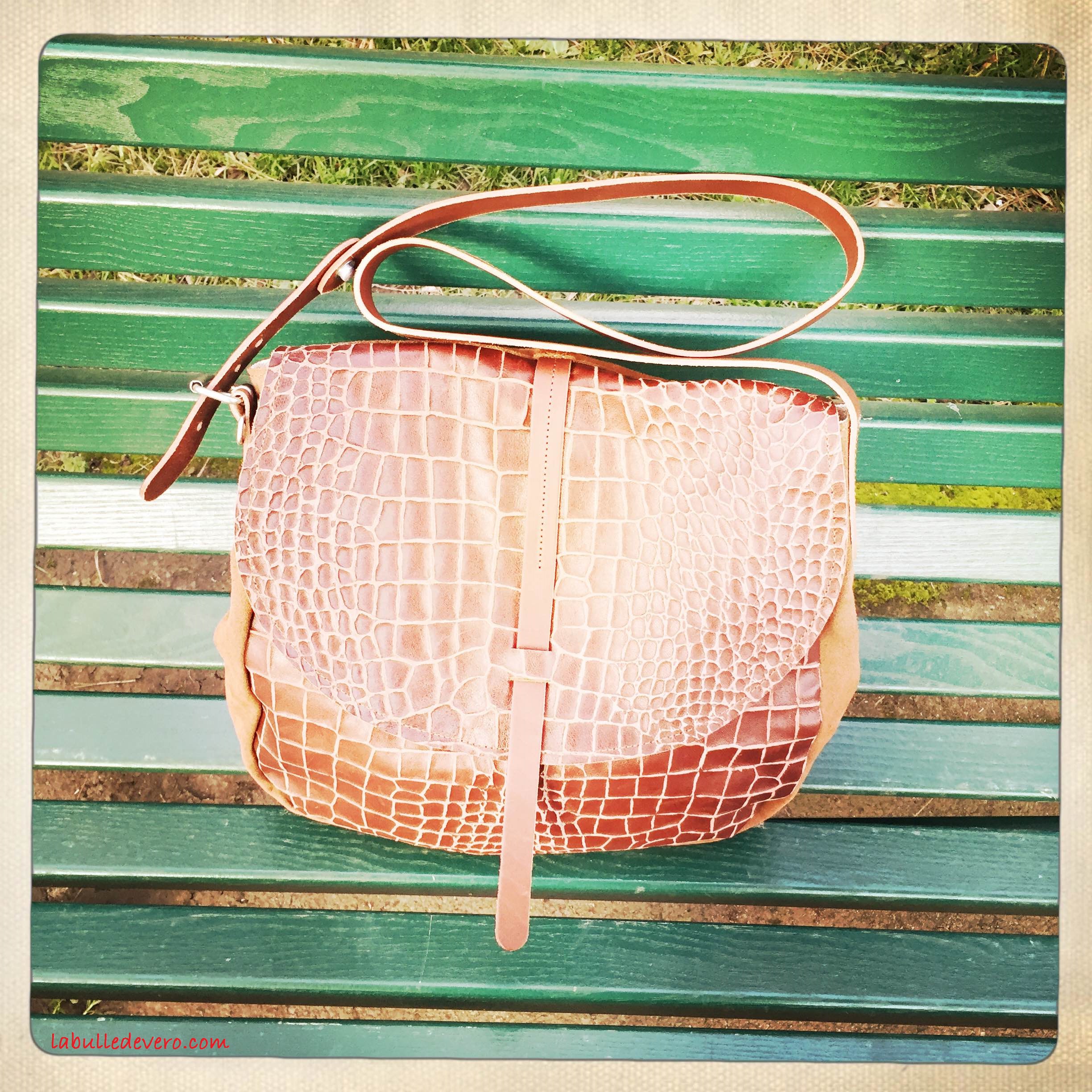 Il s’agit d’une marque française créée en 2005 à Domazan dans le Gard par Estelle Casals et qui vit une véritable histoire d’amour avec le cuir et la mode. Mon premier sac était tout de cuir doré et j’ai craqué sur un modèle plus classique pour le second.