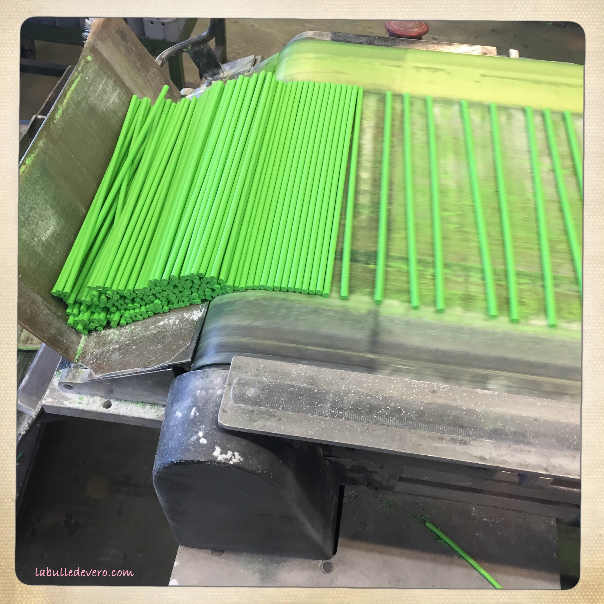 Les mines sont ensuite plongées dans la cire pour que le produit puisse se déposer sur le papier. Le bain de cire détermine si le produit sera soluble ou pas.