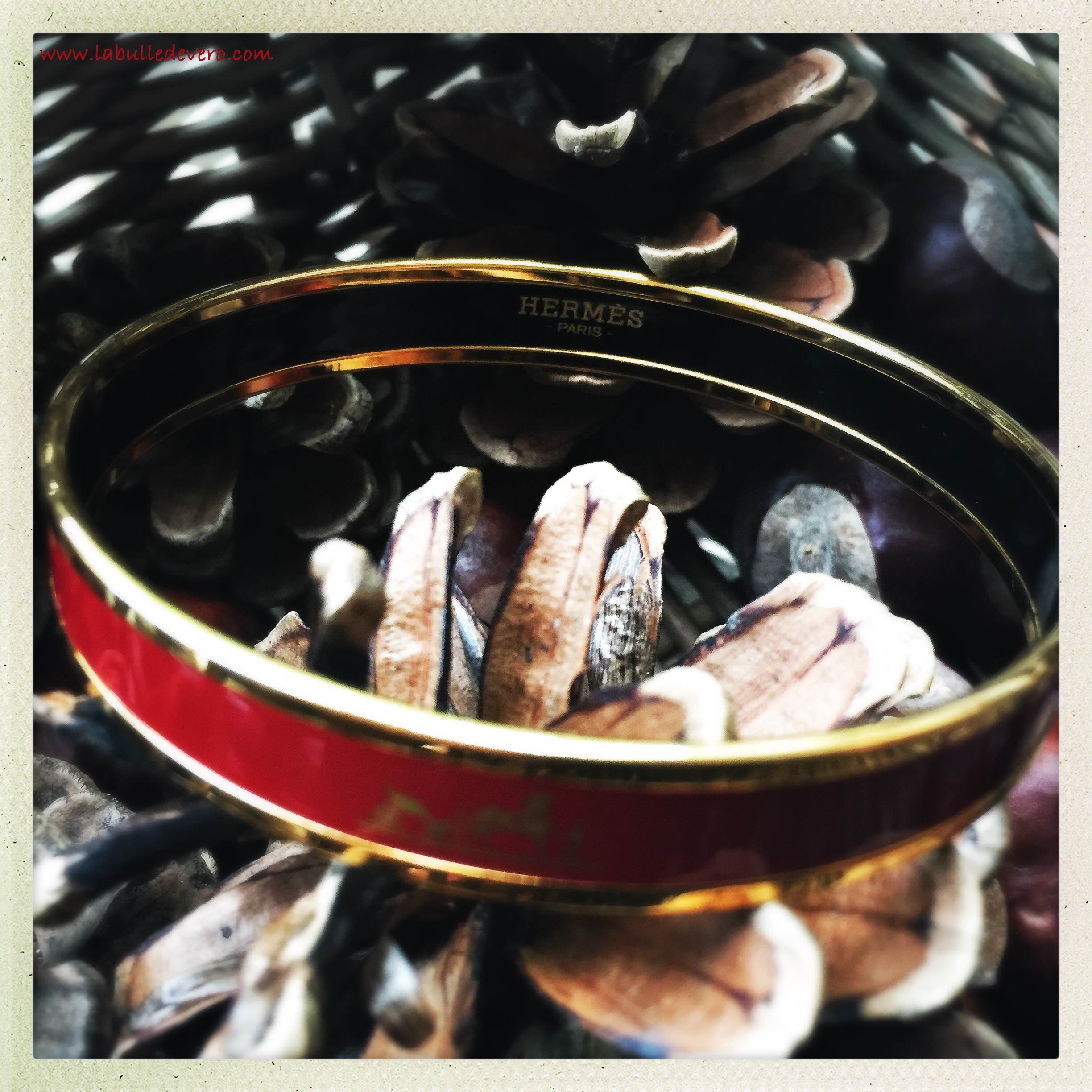 Aujourd’hui, j’ai décidé de vous présenter ce beau bordeaux uni, n’étant pas une grande fan des motifs de façon générale. Mais les bracelets Hermès se déclinent à l’infini. Il est aussi possible de les associer et de jouer avec les tailles! Précieux, ils sont aussi fragiles! Il faut donc les porter avec soin et prendre garde à ces petites merveilles qui habillent les poignets!