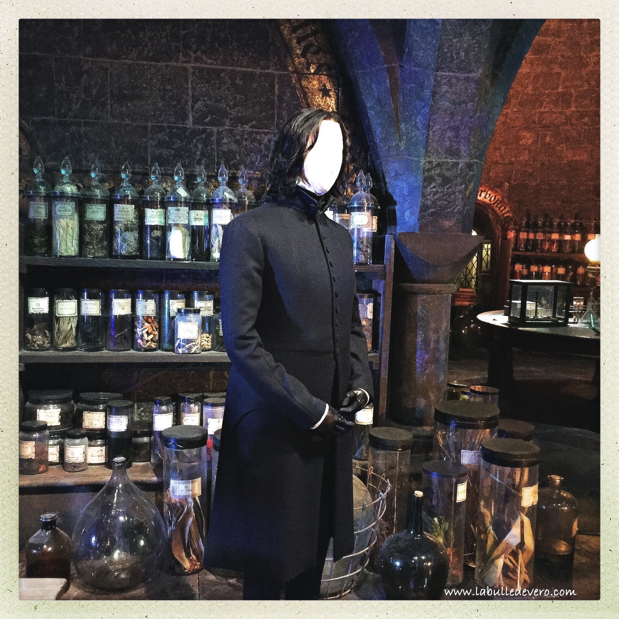 Nous voilà à présent dans la salle de potions. Une salle qui m’a touchée parce que l’acteur qui jouait Severus Rogue, Alan Rickman, est décédé récemment. Je ne peux pas expliquer pourquoi, mais cela m’a fait de la peine, car les personnes d’Harry Potter font un peu partie de ma vie!