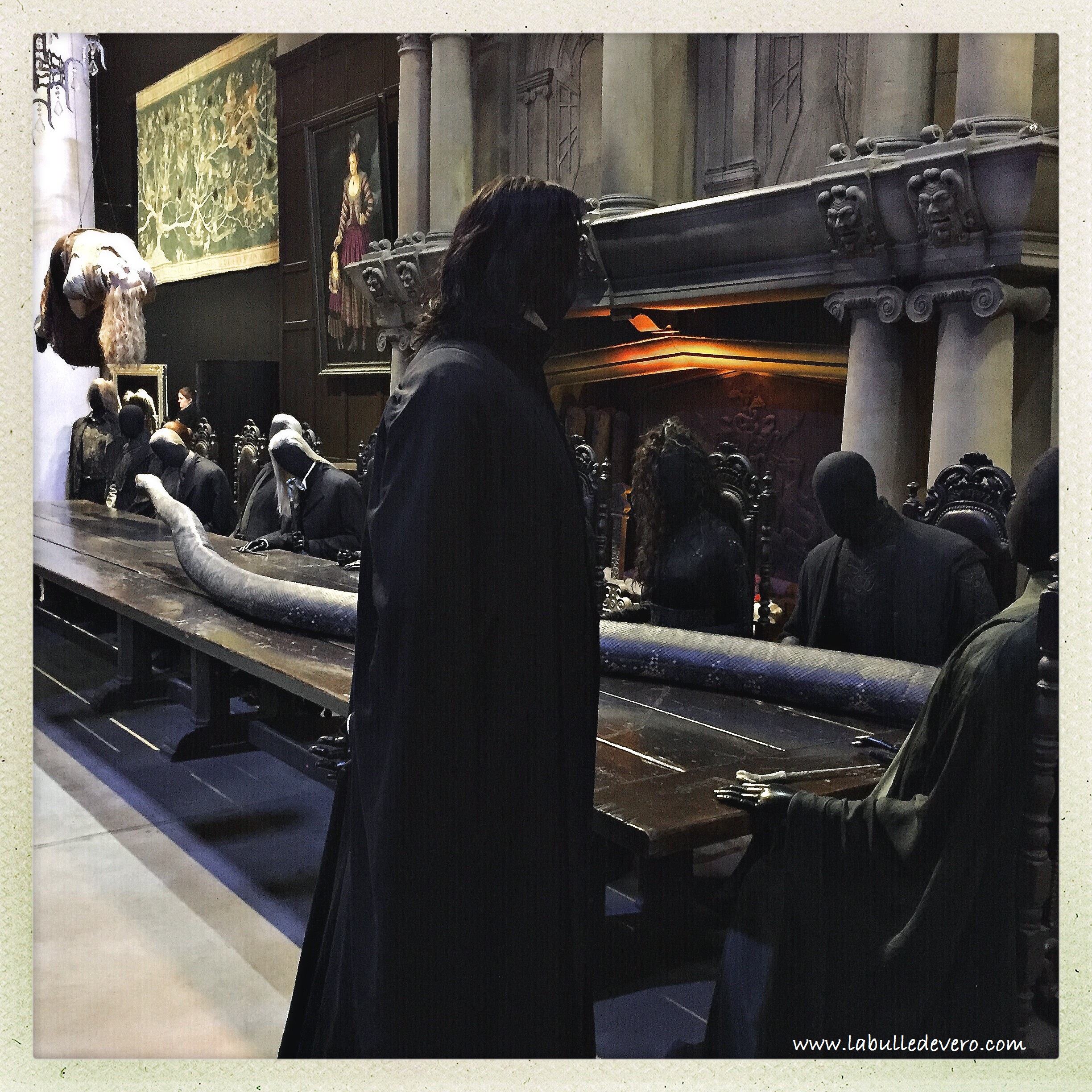 Et qui dit Harry Potter, dit automatiquement Celui-dont-on-ne-doit-pas-prononcer-le-nom! L’univers des Mangemorts est donc bien présent: des cranes, des objets de sorcelleries, des instruments de tortures et Nagini! Forcément!
