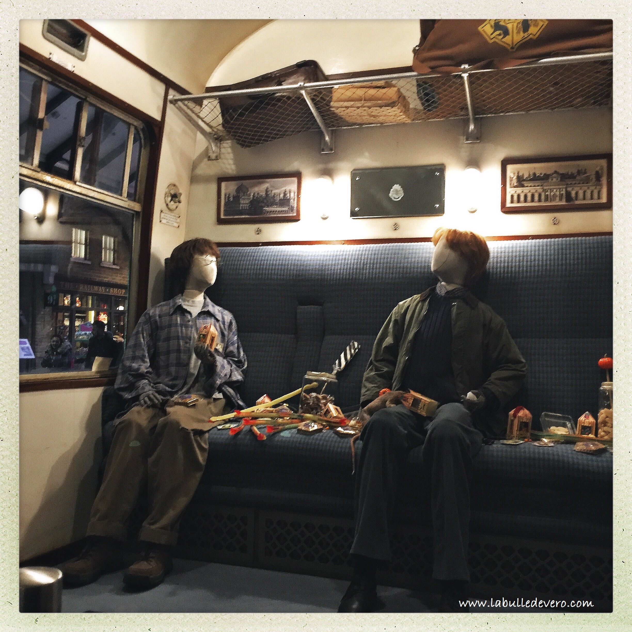 Ce qui est génial, mais vraiment génial, c’est de pouvoir monter dans le Poudlard Express. Bien sûr, les compartiments sont fermés, mais rien que d’être dans les couloirs, j’ai déjà trouvé cela fantastique! On marche vraiment sur les lieux du tournage, ce qui n’est^pas le cas partout, puisqu’il faut préserver les lieux!