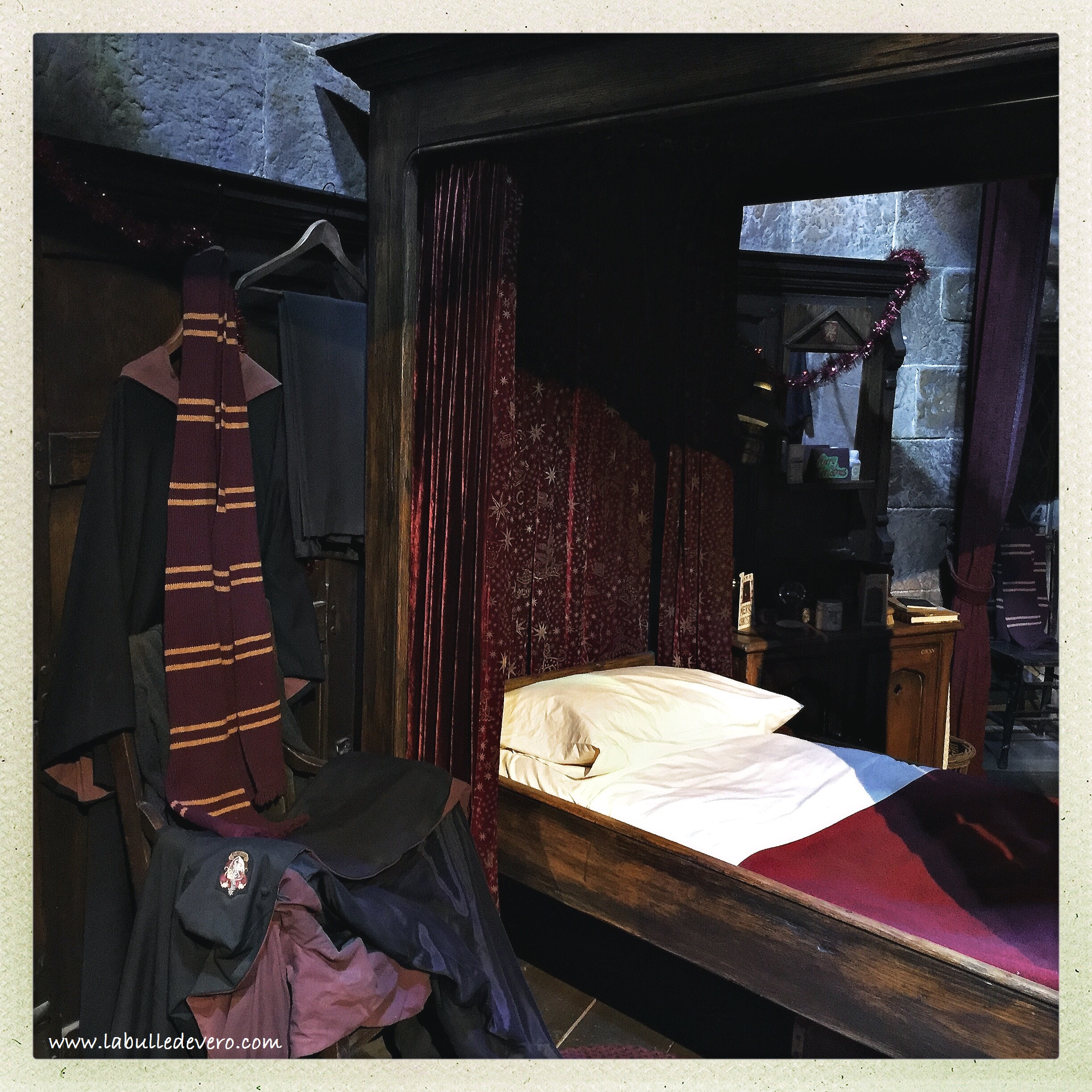 On commence la visite par l’entrée principale de Poudlard pour arriver dans la grand salle, puis on pénètre progressivement dans cet univers. On découvre les coulisses du maquillage et des costumes et on arrive dans la chambre des garçons de Gryffondor. Une des anecdotes que j’ai retenue est que, ne s’attendant pas à un tel succès, les lits ont été faits pour des garçons de 11 ans. Au fil des films, les acteurs ont grandi et ont dû se recroqueviller pour entrer dans les lits!