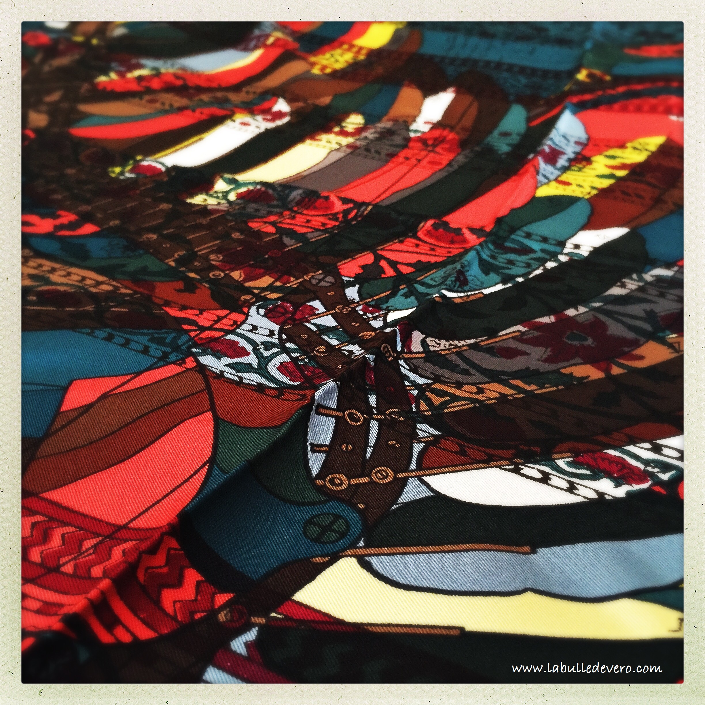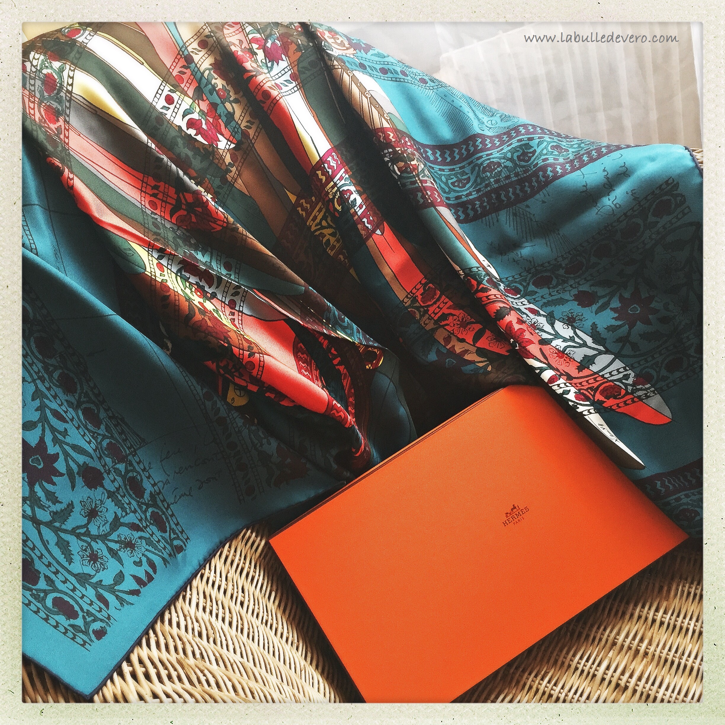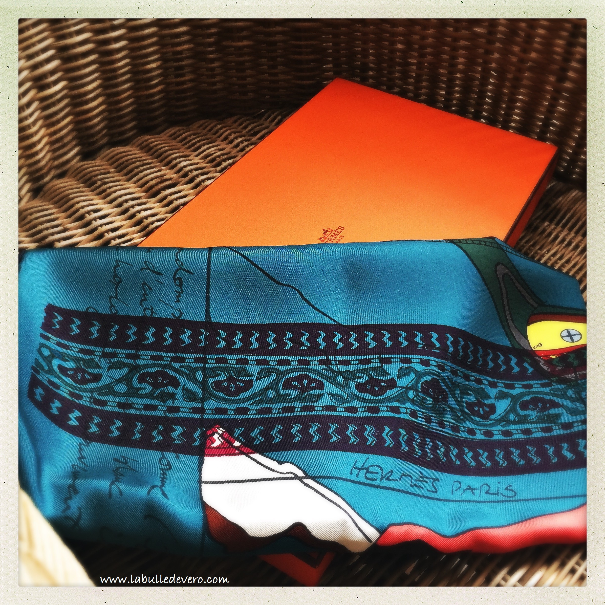 Il fait trop froid!!! Je sais que, dans quelques temps, je me serai habituée, mais là… je souffre! Et mon corps n’est pas prêt, pas prêt du tout! Je suis obligée de multiplier les couches pour conserver le plus de chaleur possible. Mais puisque j’essaie de toujours voir le beau côté de la vie, c’est l’occasion d’étrenner mon magnifique nouveau carré Hermès tout en soie!