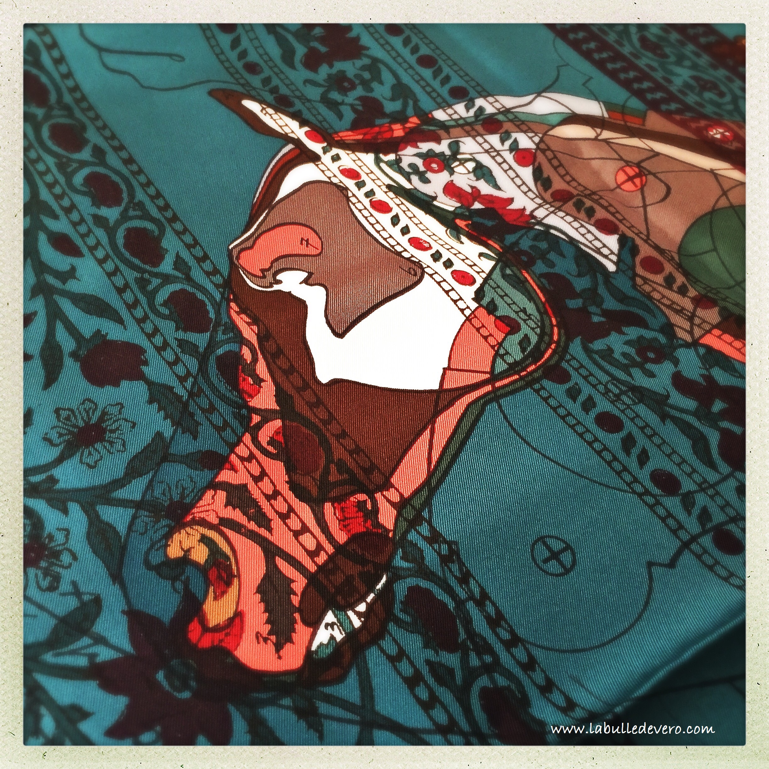 J’ai toujours vu des carrés de cette belle maison dans ma famille, mais le format classique (90cm x 90 cm) ne me convenait pas. Probablement, une volonté inavouée de m’éloigner de la tradition familiale. J’ai donc choisi la taille supérieure: 140cm x 140cm et là… je suis enchantée, car j’aime sa taille, sa couleur, sa douceur! Bref, je me suis totalement appropriée ce foulard qui va m’accompagner tout l’hiver et me protéger du froid.