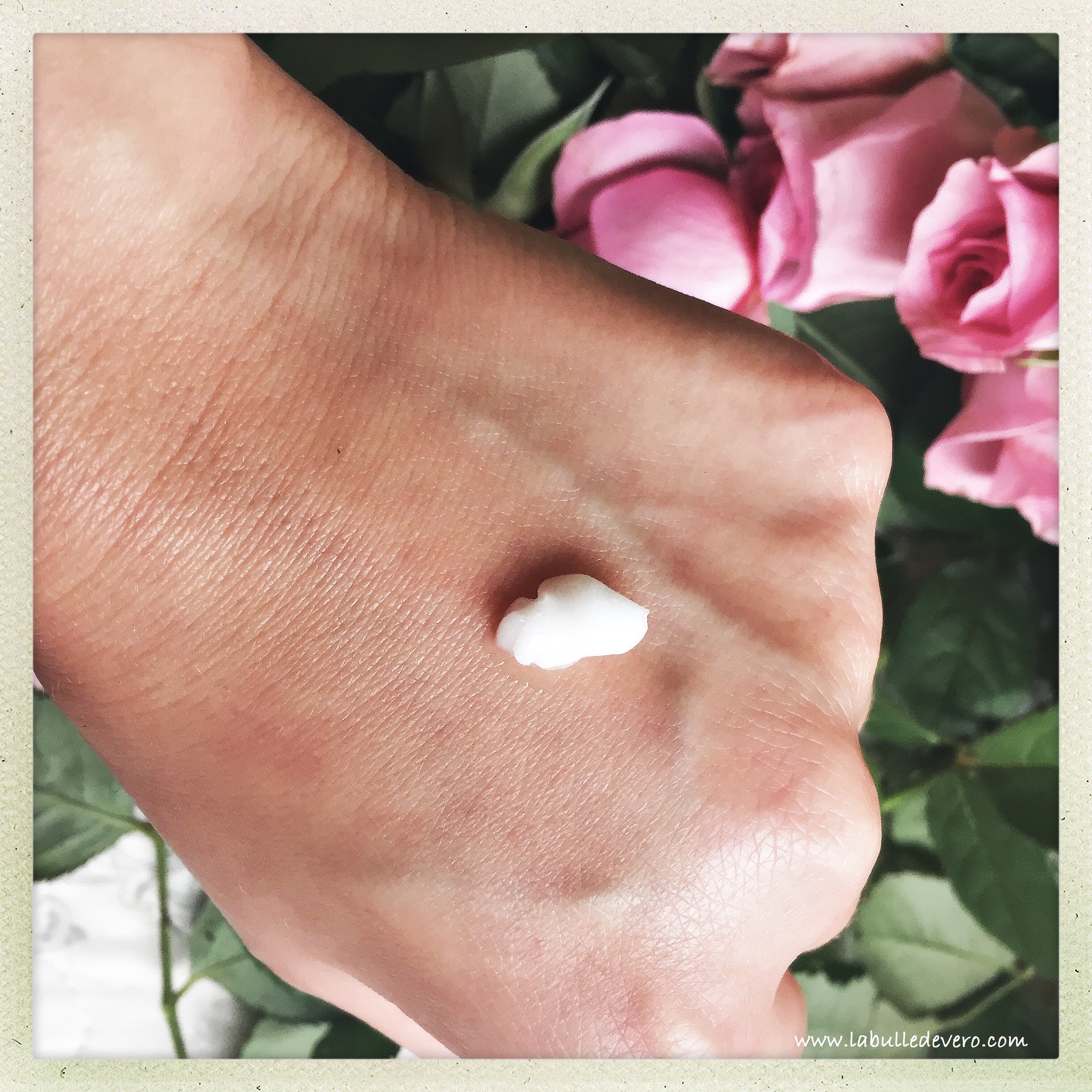 Ce flacon d’un nouveau genre est très souple et très agréable au toucher. Peut-être vous demandez-vous, comme moi d’ailleurs, comment on utilise ce tube? C’est une excellente question, car il aura fallu 4 ans pour développer ce galet unique. A l’intérieur se trouve une poche rétractable qui contient et protège la formule. Il suffit de presser sur le galet pour libérer la crème. Au fil des utilisations, la poche se rétracte et la crème est protégée de l’air et des impuretés. Cela permet aussi de terminer le tube sans en laisser à l’intérieur.