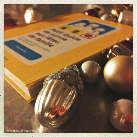 Pour tout vous raconter, c’est une amie qui m’a envoyé une photo de ce livre qu’elle venait d’acheter. Le titre m’a fait tellement rire que je me suis ruée chez Payot pour l’acheter. Il s’agit donc d’un Petit Guide de Survie aux Fêtes de famille. Pas uniquement Noël, non, toute les fêtes. Mais bien sûr, on ne peut pas s’empêcher de penser à Noël qui arrive à grands pas avec son lot d’engueulades en tout genre.