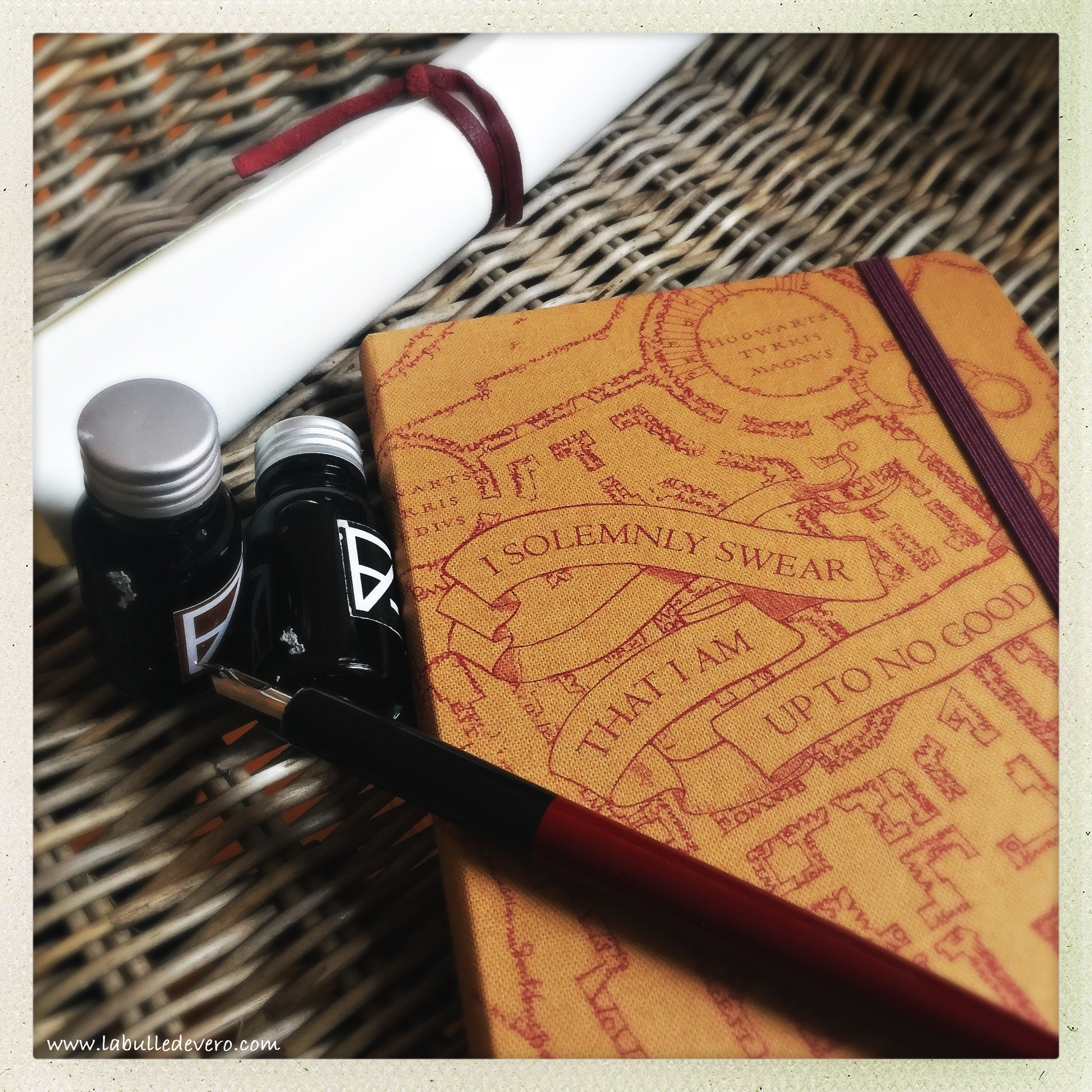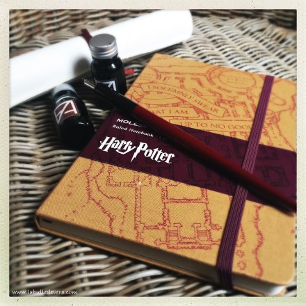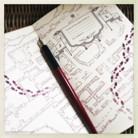 Et quand Moleskine, avec qui j’ai aussi une romance à long terme, lance une collection de cahiers Harry Potter, je suis bien incapable de résister. J’ai donc choisi le notebook sur la thématique de la carte du maraudeur (et aussi, parce que j’avais déjà celui Expecto Patronum). Rappelez-vous les jumeaux Wesley avait donnée cette carte à Harry pour qu’il puisse se déplacer sans danger dans Poudlard.