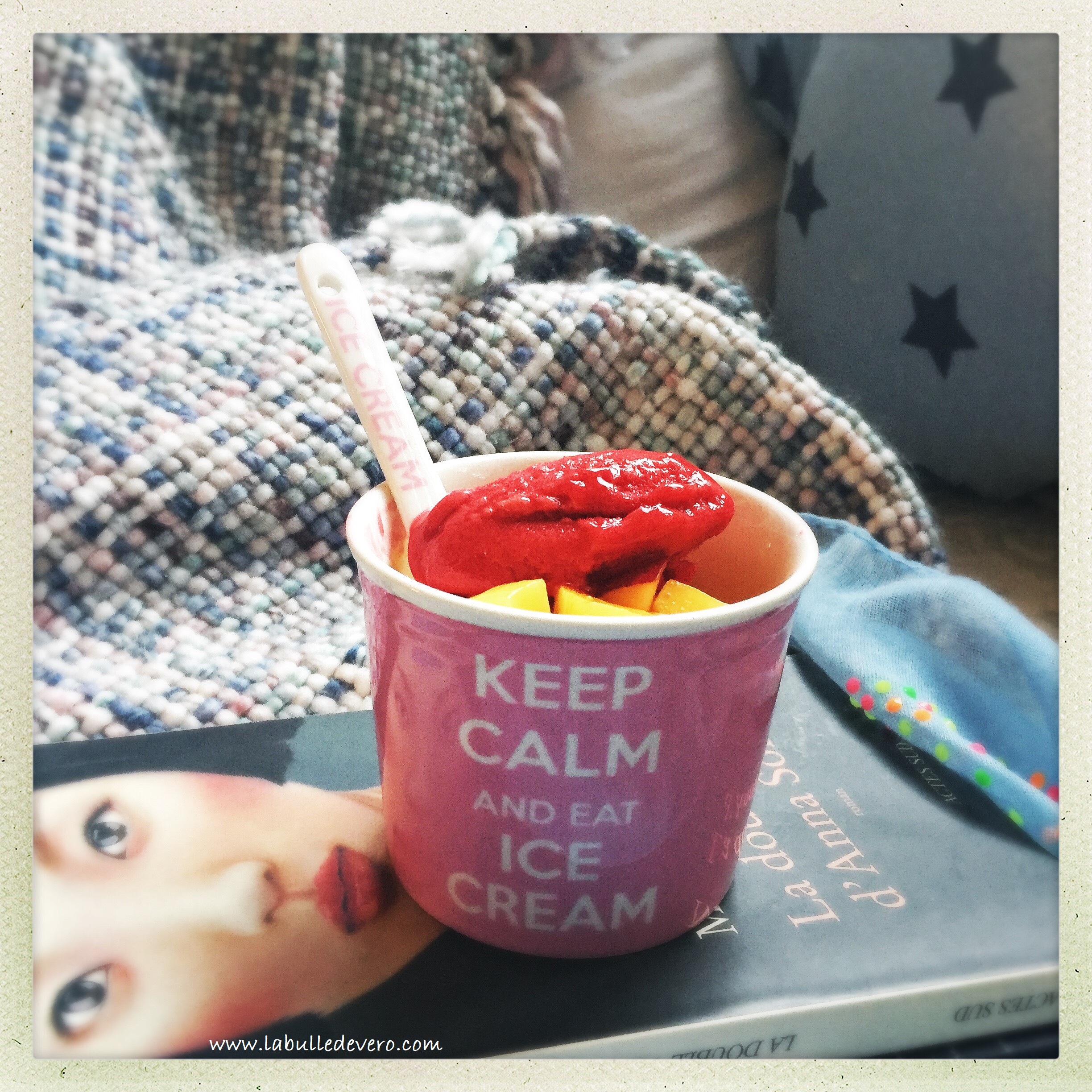 Keep Calm And Eat Ice Cream! Cela pourrait être le slogan de mon été! J’ai acheté ce petit pot de glace en porcelaine qui vient avec sa cuillère toute mignonne. Il se décline en plusieurs couleurs, mais j’ai bien entendu choisi le rose. Ni trop grand, ni trop petit, ce petit pot à la taille parfaite! Un peu de glace, quelques fruits et le bonheur est parfait!