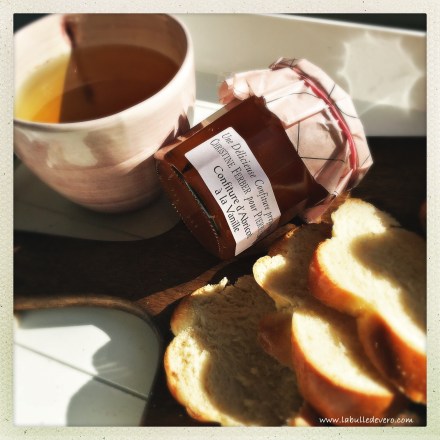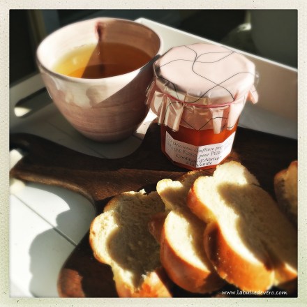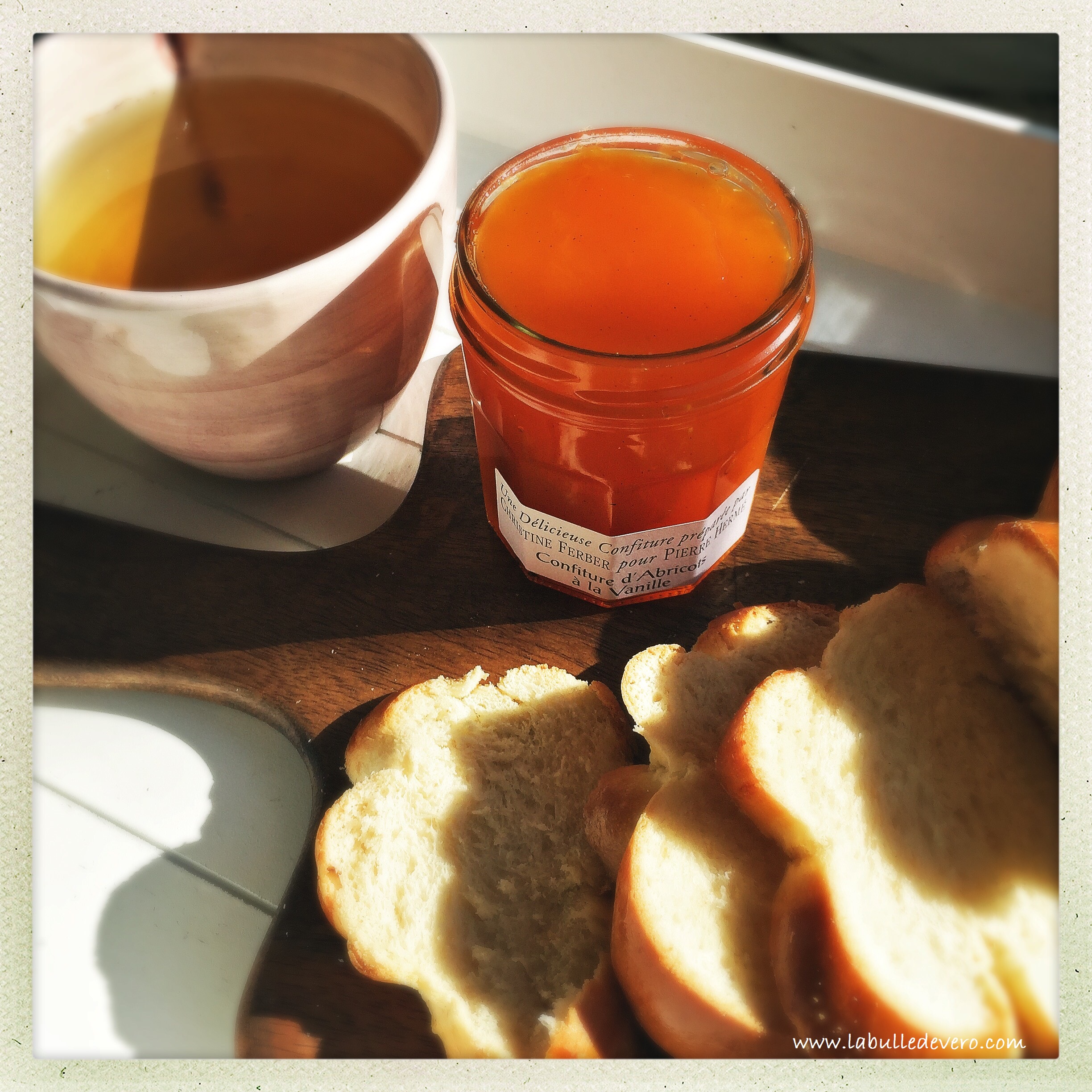 Pour me mettre dans l’ambiance, j’ai acheté une petite confiture lors d’un de mes derniers passages à Paris chez Pierre Hermé. J’ai choisi une confiture d’abricot à la vanille.