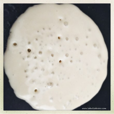 Puis faites chauffer une poêle avec du beurre et un peu d’huile. Il y a un petit truc pour que la cuisson soit parfaite. Lorsque la pâte est dans la poêle, il faut retourner le pancake dès que des petites bulles apparaissent sur le pancake. Vous verrez, ils auront une couleur parfaite!