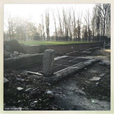 Lorsqu’on arrive au bout des rails, on entre dans Birkenau et on découvre les restes des chambres à gaz qui ont été détruites à la va vite.