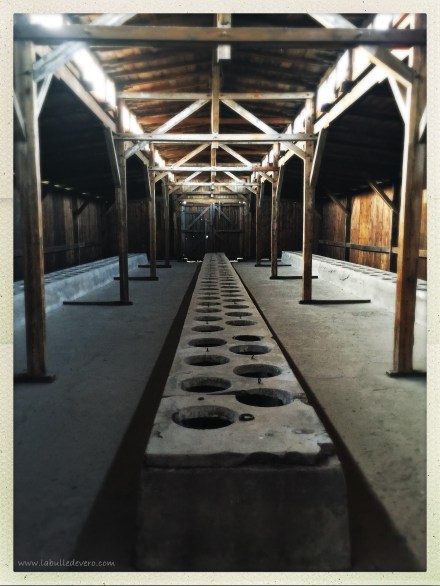 La visite s’est terminée sur ce bâtiment. Mais l’accès à Birkenau étant libre, nous avons poursuivi et nous sommes allés visiter les baraques en bois qui étaient à la base des écuries et où nous avons découvert les latrines. Dans d’autres, il y avait des lits superposés. Elles étaient prévues pour 70 chevaux et on y stockait 400 personnes.