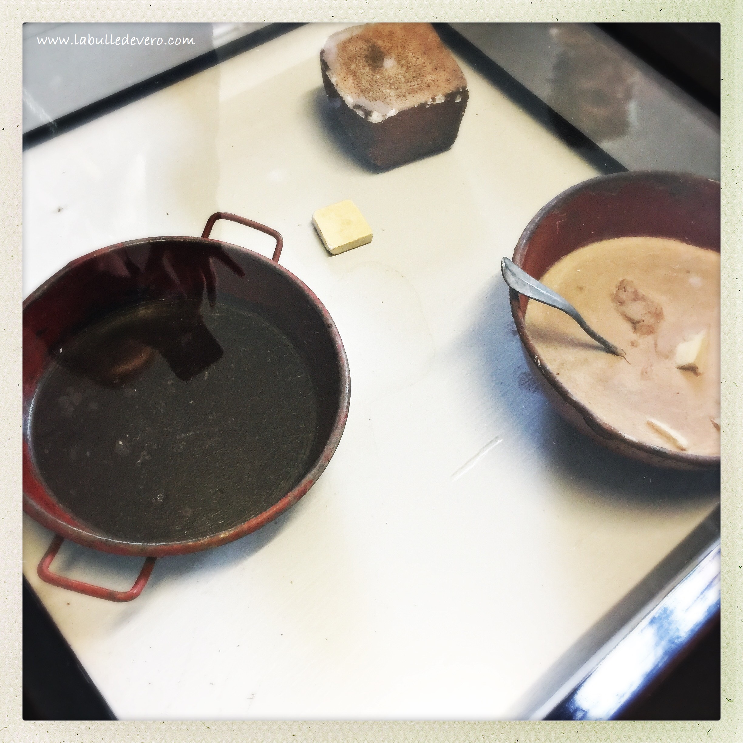 La suite de la visite nous montre comment les prisonniers vivaient, où ils dormaient, comment ils se lavaient et comment on les faisait mourir de faim avec des portions ridiculement petites: un café, une soupe et un quignon de pain. La valeur énergétique de l’alimentation des détenus prévoyait de les faire survivre trois mois.