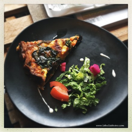 Personnellement, ce jour-là j’ai pris le plat du jour: une quiche à la patate douce qui était vraiment délicieuse. L’entrée était normalement une soupe, mais j’ai pu prendre du houmous à la place et j’ai emporté mon dessert au bureau: un délicieux cheesecake au citron.