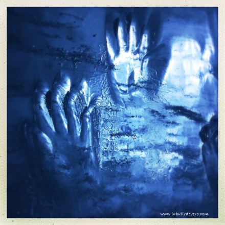 Sur le sol, un tapis permet de se balader sans risque, de prendre une photo sur le trône de glace, de placer ses mains dans ces empreintes de glace. Il suffit de rester sur le tapis, ce que je n’ai bien sur pas fait, puisque je ne regardais pas où je mettais mes fesses! Eh hop! Sur le popotin! C’est pas facile d’être une Vero distraite!
