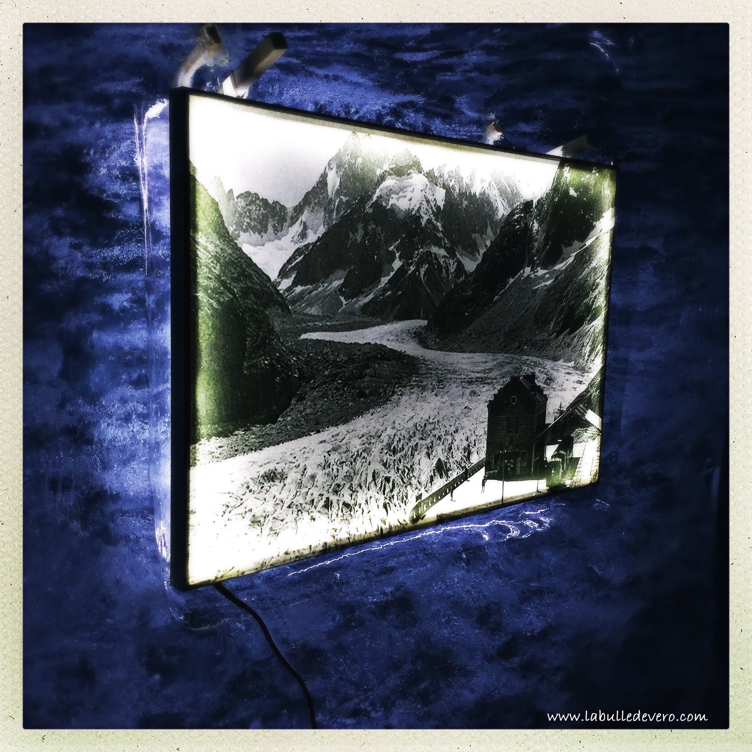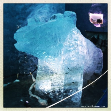 La visite est ponctuée de sculptures de glaces, mais aussi de photos qui montrent l’évolutions du paysage.