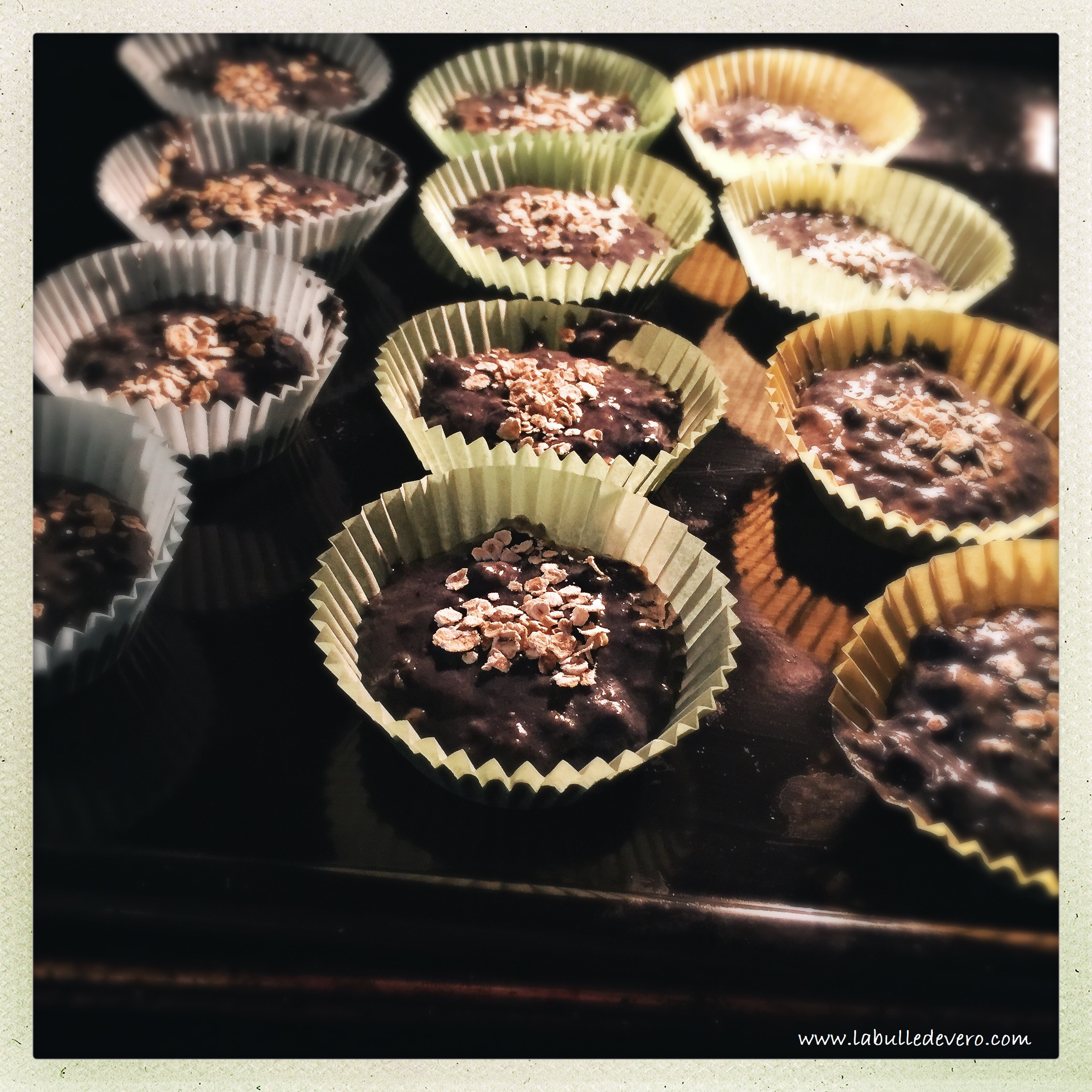 Il faut verser le contenu dans des moules et les soupoudrer de flocons d’avoine. Puis, il suffit ensuite de les faire cuire 30 minutes dans un four à 180 degrés, préalablement préchauffé! Un vrai petit bonheur à partager. Moi… je les apporte demain au bureau!
