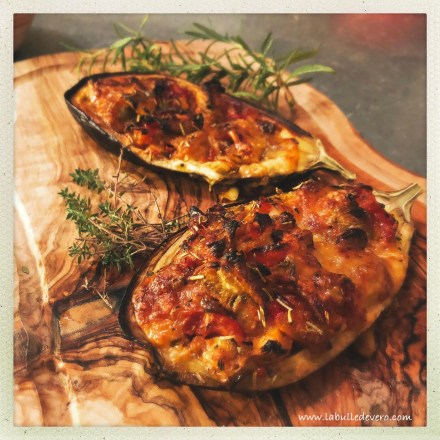 Préchauffez le four à 210°. Taillez la mozzarella et les tomates en dés, hachez l’ail et les olives. Puis coupez les aubergines en deux. Evidez chaque moitié avec une cuillère en laissant 1 cm de chair sur la peau. Taillez la chair en dés, puis faites-là la sautez avec l’ail, les olives et les tomates dans une poêle pendant 5 minutes. Mélangez la préparation avec la mozzarella, le coulis de tomates et ajoutez un peu d’huile. Mélangez le tout et garnissez les aubergines. Mettez les aubergines dans un plat, saupoudrez d’épices et hop: 40 minutes au four!