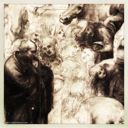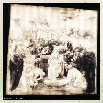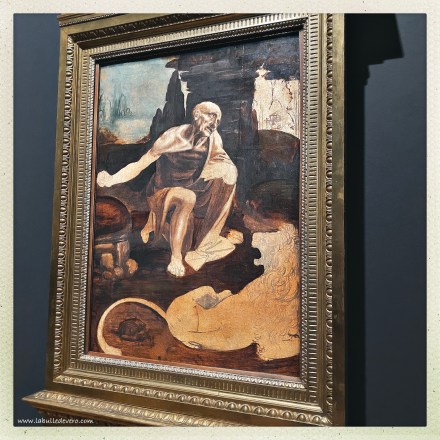 Ce qui est très intéressant aussi est de découvrir que Léonard de Vinci aimait en finalité plus ses études que ses œuvres – du moins, c’est ce que je pense – car il en a laissé beaucoup d’inachevés comme avec ce Saint-Jérôme Pénitent. On ne le voit peut-être pas bien sur la photographie mais le tableau est en cours et on ne sait pas pourquoi le peintre a abandonné son œuvre.