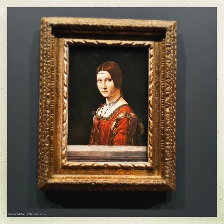 Mais bien sûr il y a quelques œuvres achevées comme la Belle Ferronnière. Cette œuvre a été terminée en 1519 et selon le guide, elle révolutionne ici le portrait féminin par la vitalité du mouvement, la complexité des articulations, le caractère inassignable du regard, la force de l’intelligence et de la volonté, la souveraineté de la conscience. Avec cette œuvre, Léonard de Vinci rompt aussi avec la tradition milanaise du pur profil. C’est une petite révolution… le début des selfies!