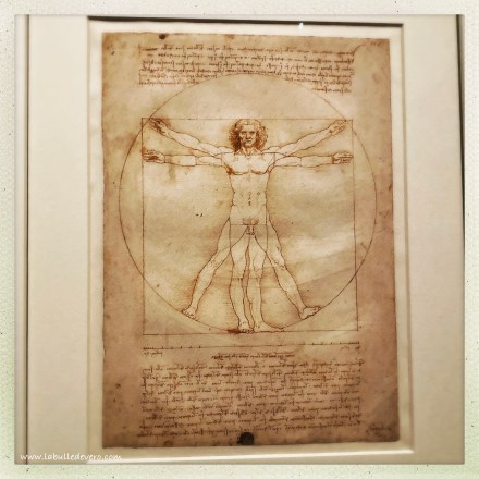 Du coup, on ralentit, on attend et il faut vraiment beaucoup de temps, si on veut tout voir. Et moi je n’ai pas eu le temps de tout voir. Heureusement, j’ai pu voir tout ce m’était important! A l’arrivée, cette salle était le plus chargée, mais j’ai vraiment pris le temps de découvrir chaque document pour arriver à l’Homme de Vitruve!