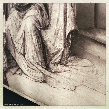 Plus on s’approche de la réfléctographie, plus on découvre les travails préalables de l’artiste. Ses coup de crayons sont bien visibles!