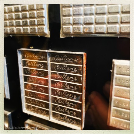 Cette visite qui dure environ une heure nous plonge dans l’histoire du chocolat, des aztèques à l’ouverture de la chocolaterie Cailler. Je n’ai pas pris beaucoup de photographies durant cette partie de la visite, car il faisait un peu sombre, mais c’était très sympa. C’est une visite qui convient aussi bien aux enfants qu’aux adultes! Ce n’est pas hyper technique, mais on découvre de jolies légendes et des faits historiques autour du chocolat.