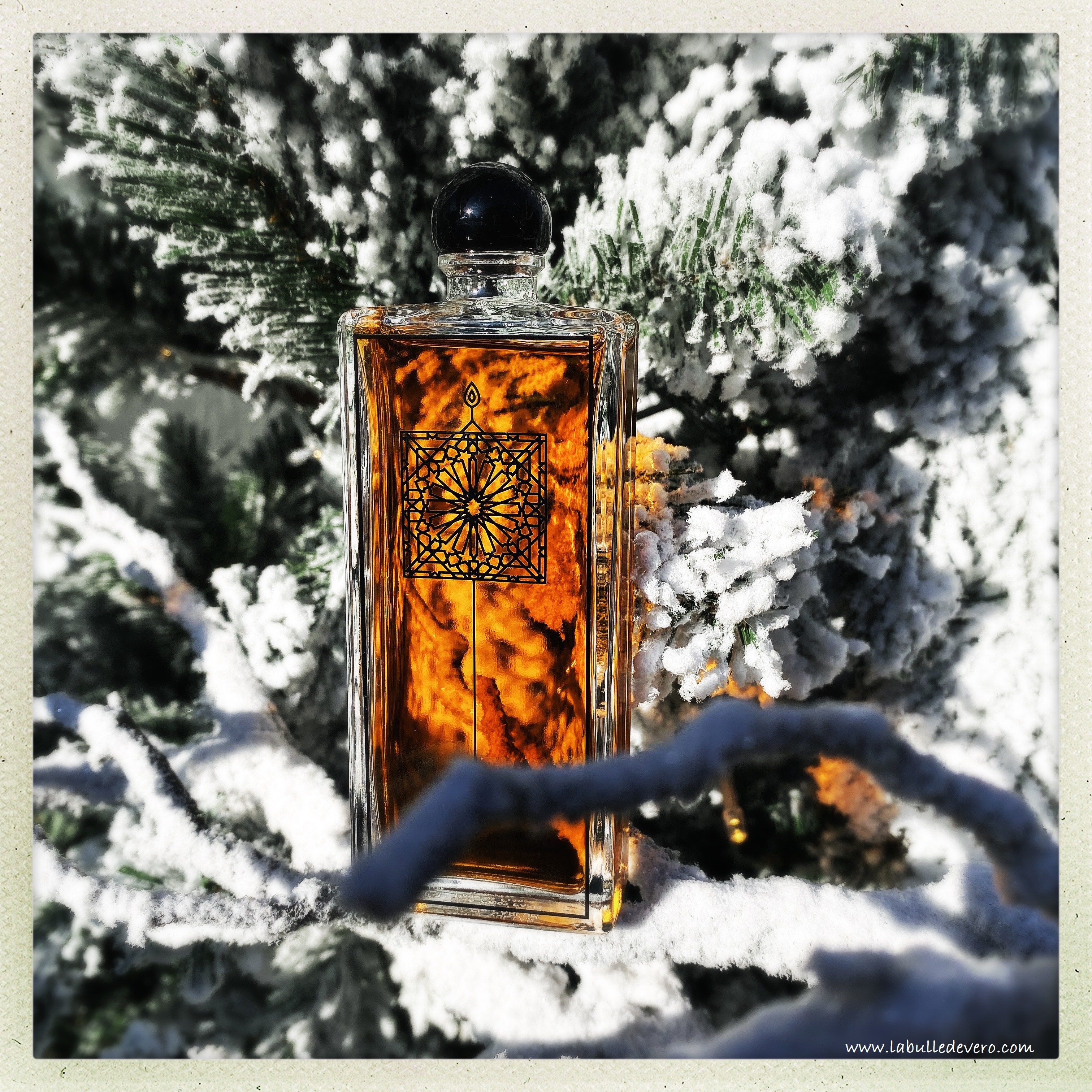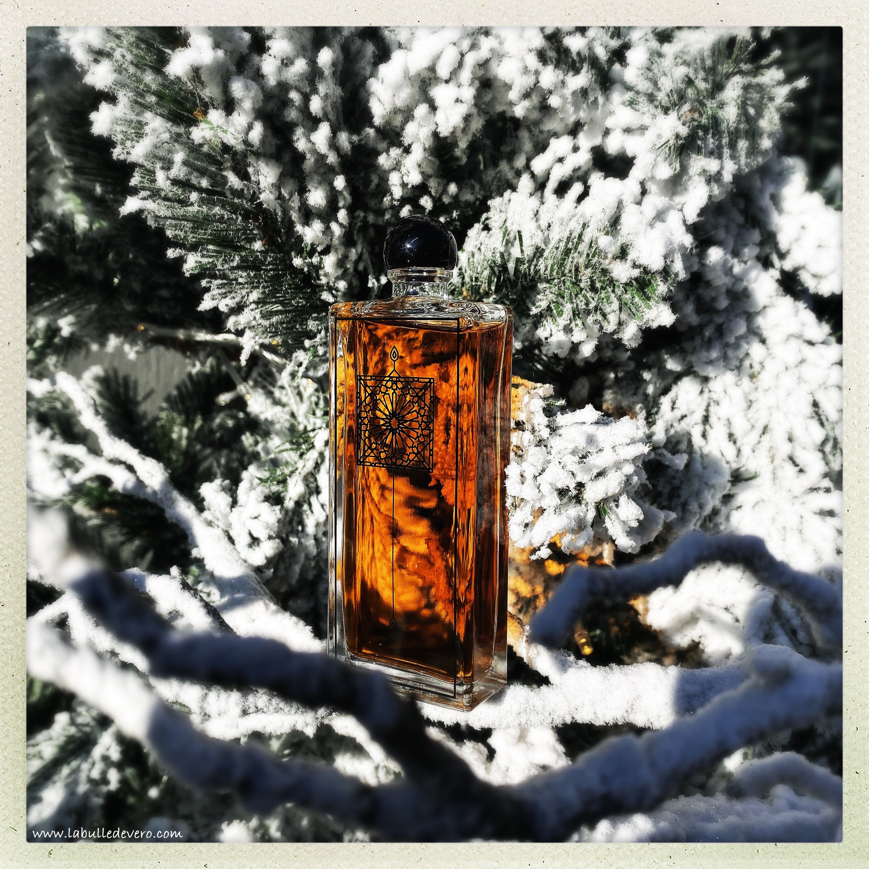 Trois parfums, mais mon cœur bat pour celui qui symbolise pour moi Monsieur Lutens, car c’est le parfum qu’il portait lorsque je l’ai rencontré la première fois: Ambre Sultan. Connaître les notes d’un parfum Lutens est impossible. M. Lutens pense que cela n’aide pas à aimer ou à comprendre un parfum. Néanmoins pour vous situer Ambre Sultan, il s’agit bien sûr d’un parfum oriental et Moniseur Lutens en dit cela: « Parti d’une cire odoriférante trouvée aux souks et longtemps oubliée au centre d’une boîte de bois, cet ambre ne devint sultan que lorsque je l’eus recomposé : du ciste, une herbe qui colle les doigts, un goudron, et sur lui un truc qu’alors personne n’imaginait, de la vanille. ». C’est un parfum qui réconforte et qui apporte de la chaleur. C’est un parfum que je porte en hiver et que j’adore! Et je l’adore en plus dans son nouvel habit de lumière.