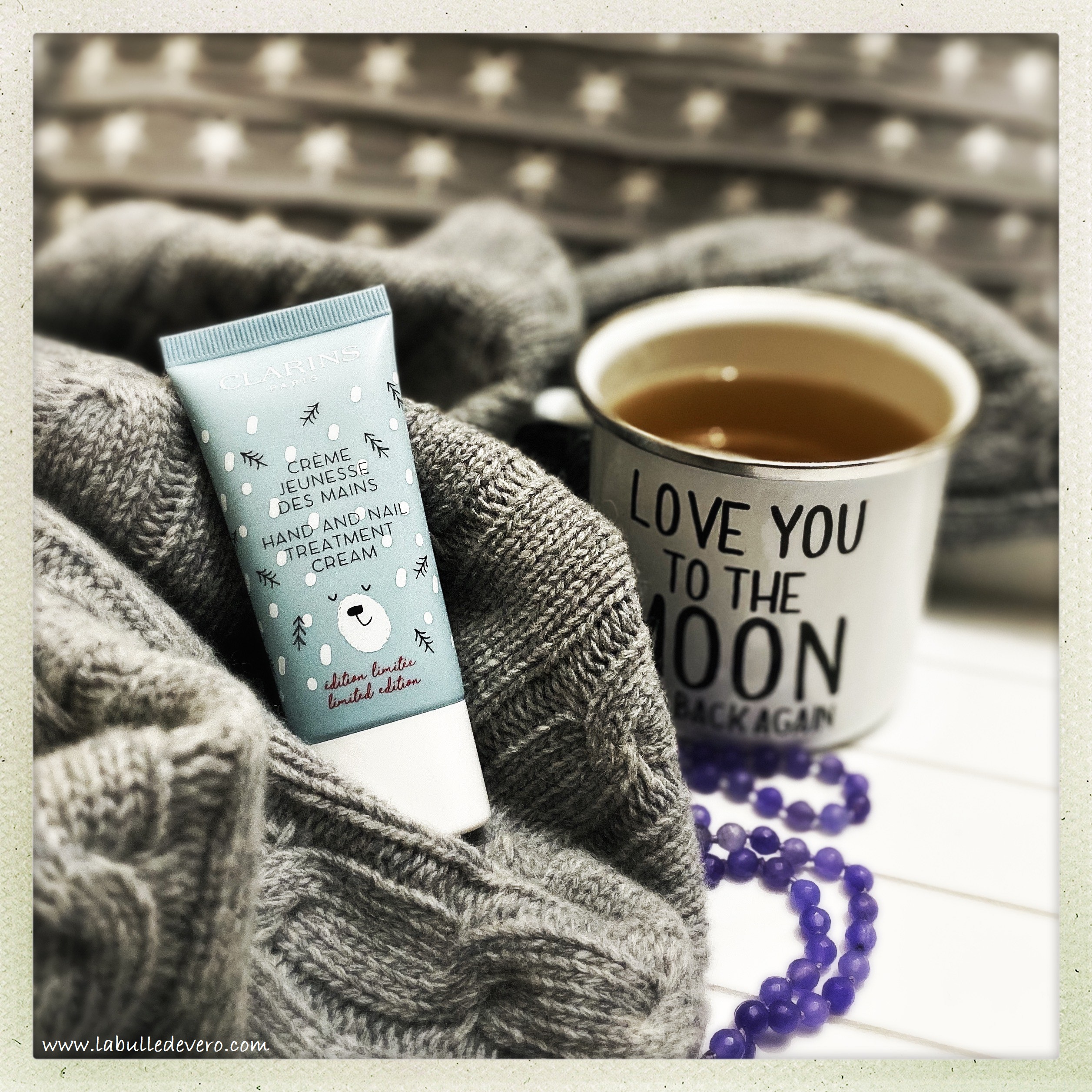 Pour résister au temps frisquet qu’il fait en ce moment, je fais une consommation intensive de crèmes pour les mains. J’aligne les tubes les uns derrières les autres pour garder les mains dans un bon état. Comme vous le savez, j’aime bien découvrir de nouveaux produits et mon dernier achat est cette crème pour les mains de chez Clarins. Je connaissais déjà la crème de Clarins – que je trouvais déjà très bien – mais mon achat a été motivé par ce packaging d’hiver extrêmement mignon avec son petit ours qui a séduit mon petit cœur de bisounours.