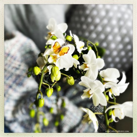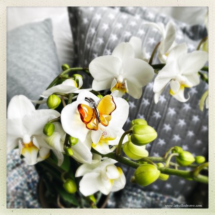 Ce papillon existe en différentes teintes, mais je ne voulais pas tomber dans une couleur classique, j’ai donc opté pour cette couleur solaire, un bel orange, qui convient parfaitement aux couleurs foncées que je porte au quotidien. Il existe aussi en blanc, en parme, en rouge, en bleu ciel et en fuchsia.