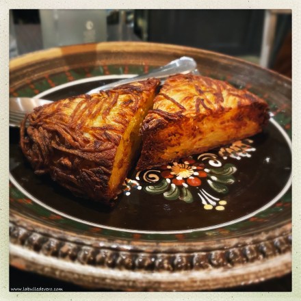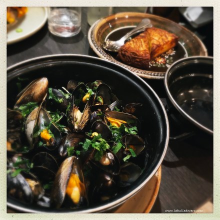 Ayant déjà été au restaurant à midi, j’ai voulu faire un peu léger, j’ai donc choisi des moules – bon… vous me direz que pour le local, c’est un peu raté et je ne peux qu’approuver, mais tant pis, c’était drôlement bon! Il y en avait des marinières mais j’ai choisi celles au gingembre et au lait de coco. C’était vraiment parfait! Les moules ne viennent pas avec des frittes, mais avec la spécialité de la maison: les röstis! Comme vous pouvez le voir, elles étaient bien croustillantes comme il faut! Une très bonne alternative. Je fus parfaitement satisfaite et donc très heureuse. La vie est simple parfois!