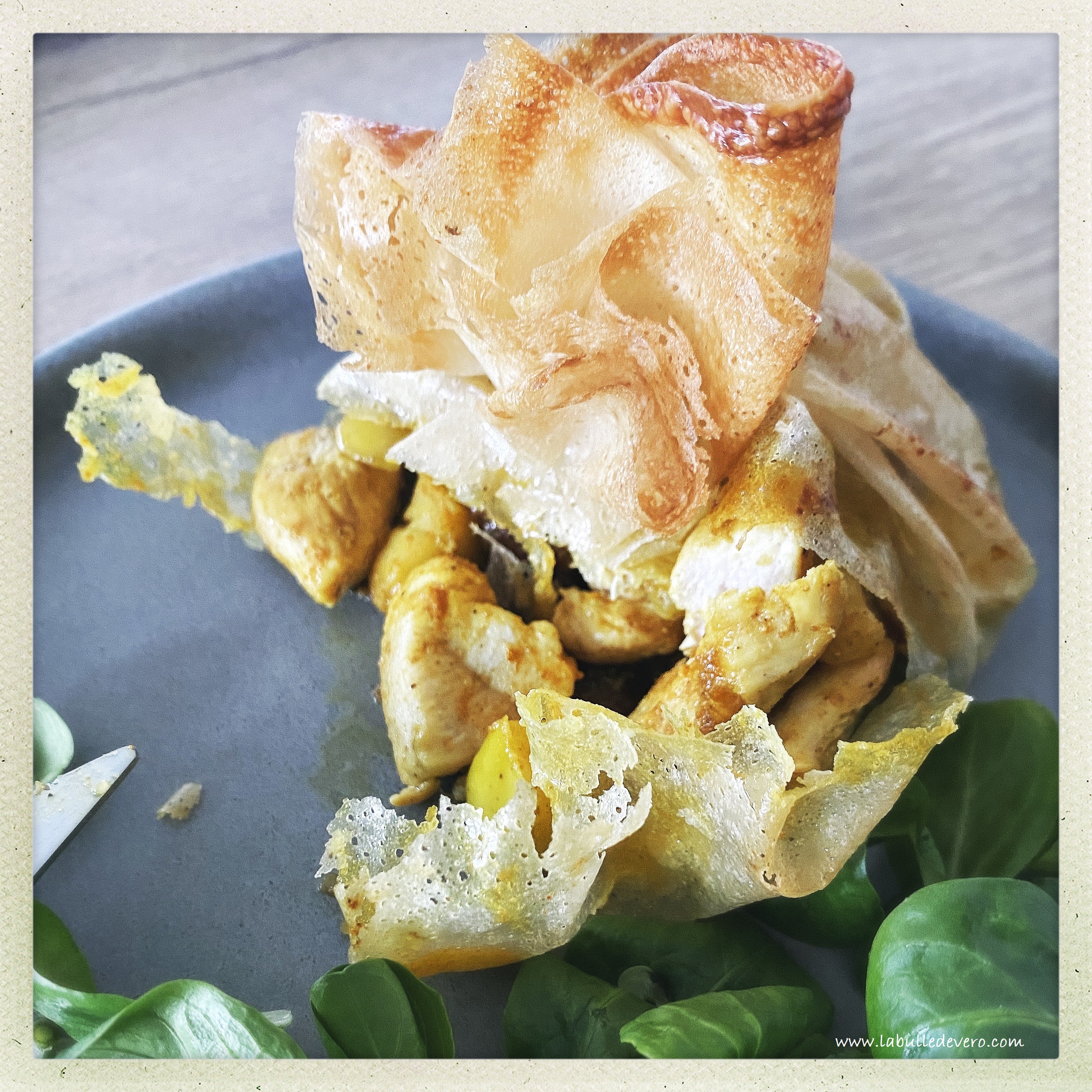 Comme je vous le disais récemment, j’ai plein de recettes dans tous les coins, car je suis certes bien trop gourmande, mais surtout j’aime tenter de nouvelles recettes! Et si le confinement a au moins un point positif, c’est qu’il nous donne le temps de cuisiner de bonnes choses! Cette recette, que j’ai trouvé dans le magazine Femina, est une donc une délicate aumônière de poulet au curry et aux pommes. Un délice bien plus facile à réalise qu’il n’y parait!