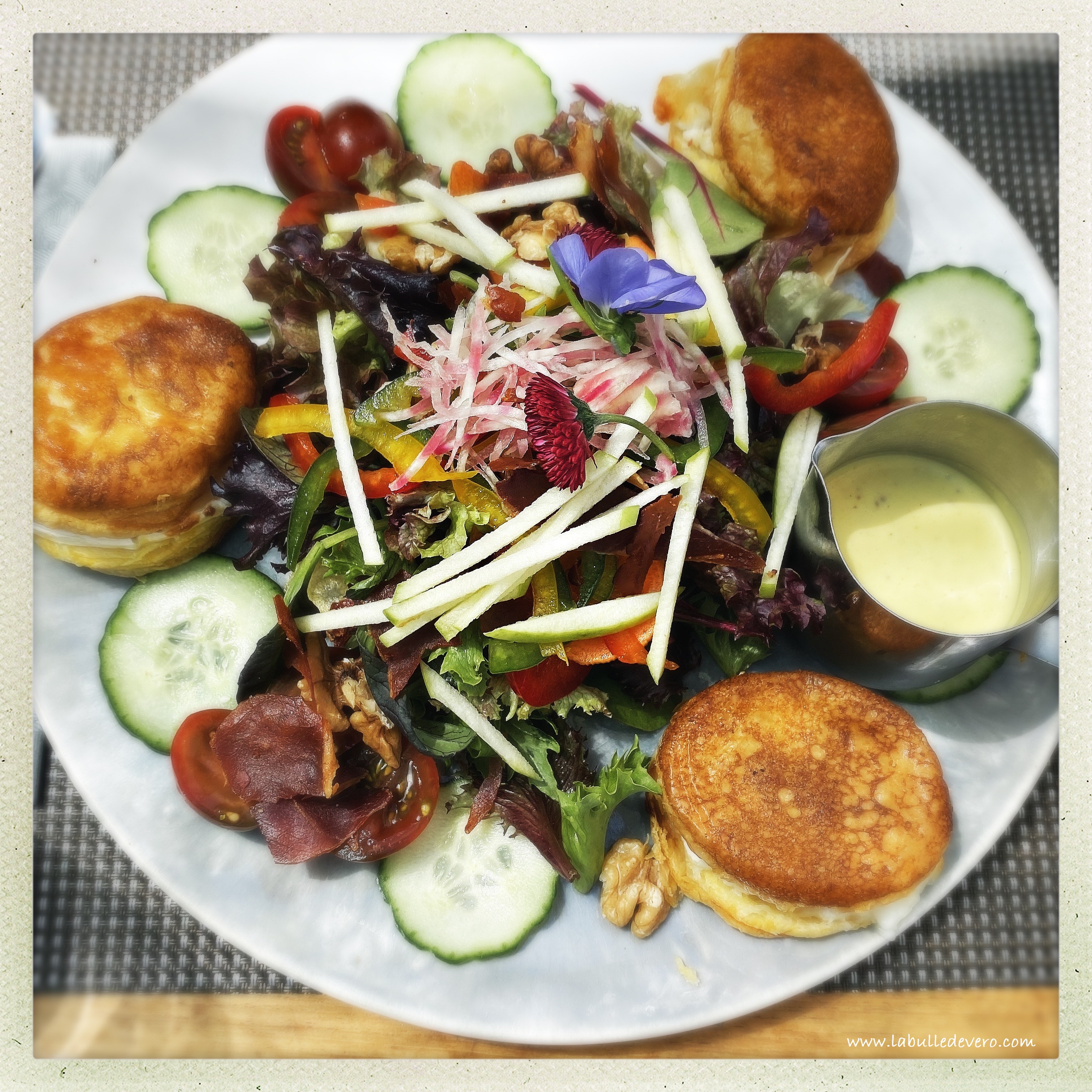 La carte est très courte et propose de jolis petits plats comme des salades, un burger, un risotto ou encore les pâtes du moment. C’est très sympa et les plats sont très copieux. Ce jour-là, mon frère et moi avons choisi la salade poulet-avocat et ma maman, celle au fromage de chèvre. C’était aussi bon que beau avec des produits très frais, en plus du bonheur de s’asseoir en terrasse.