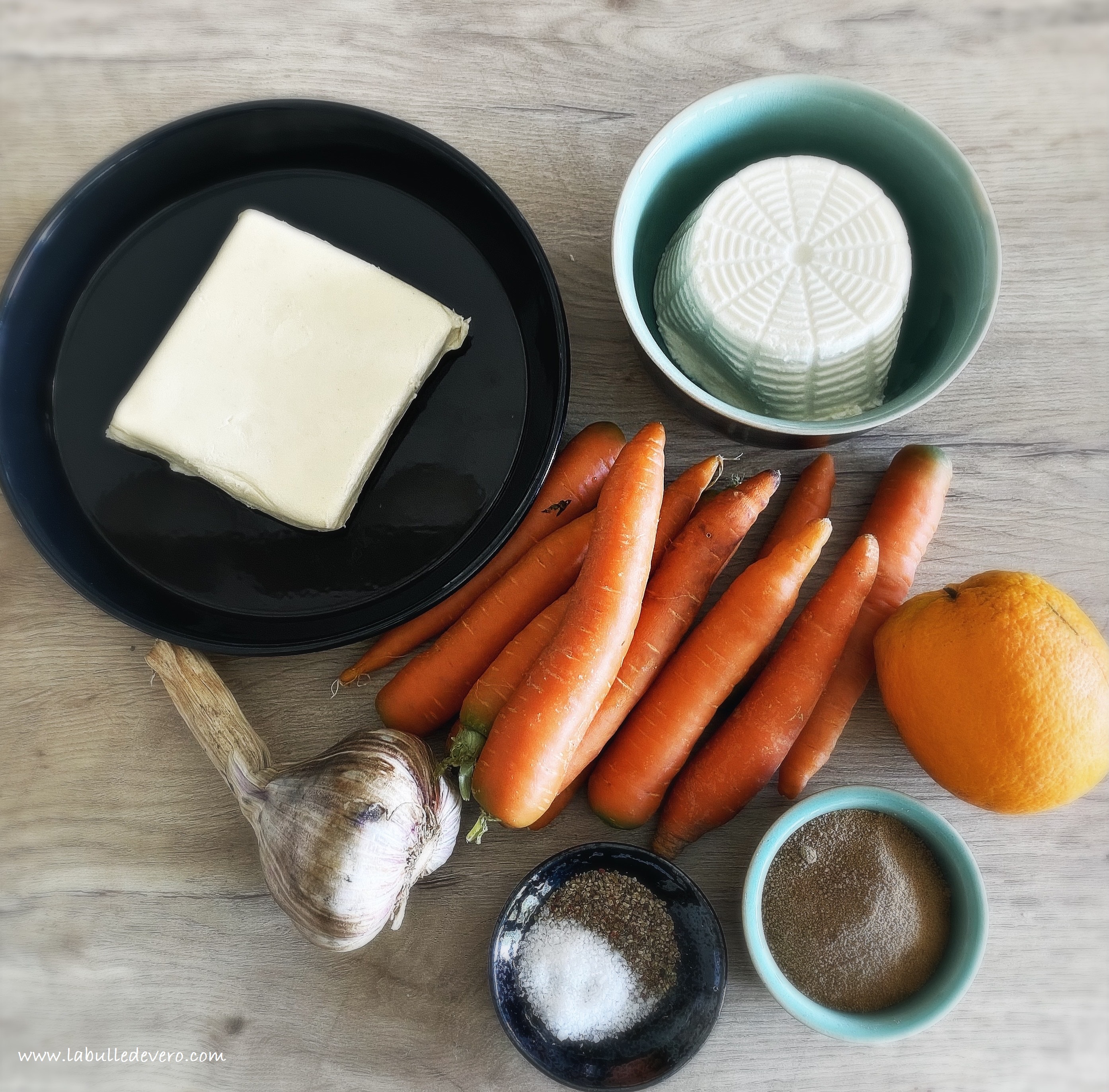 Pour cette recette et pour 4 personnes, il vous faudra 2 bottes de carottes, 1 rouleau de pâte feuilletée, 1 orange, 2 gousses d’ail, 300 grammes de ricotta, 70 grammes de sucre, du sel et du poivre.