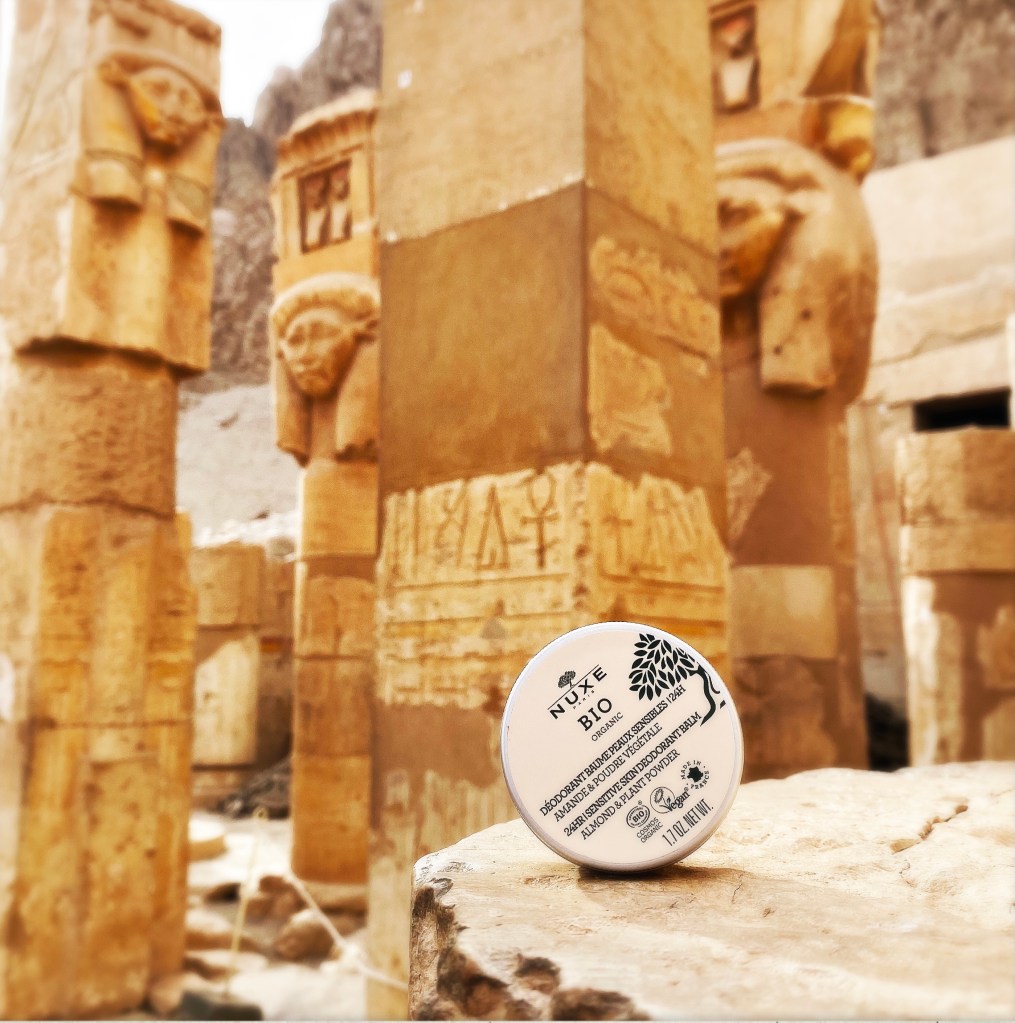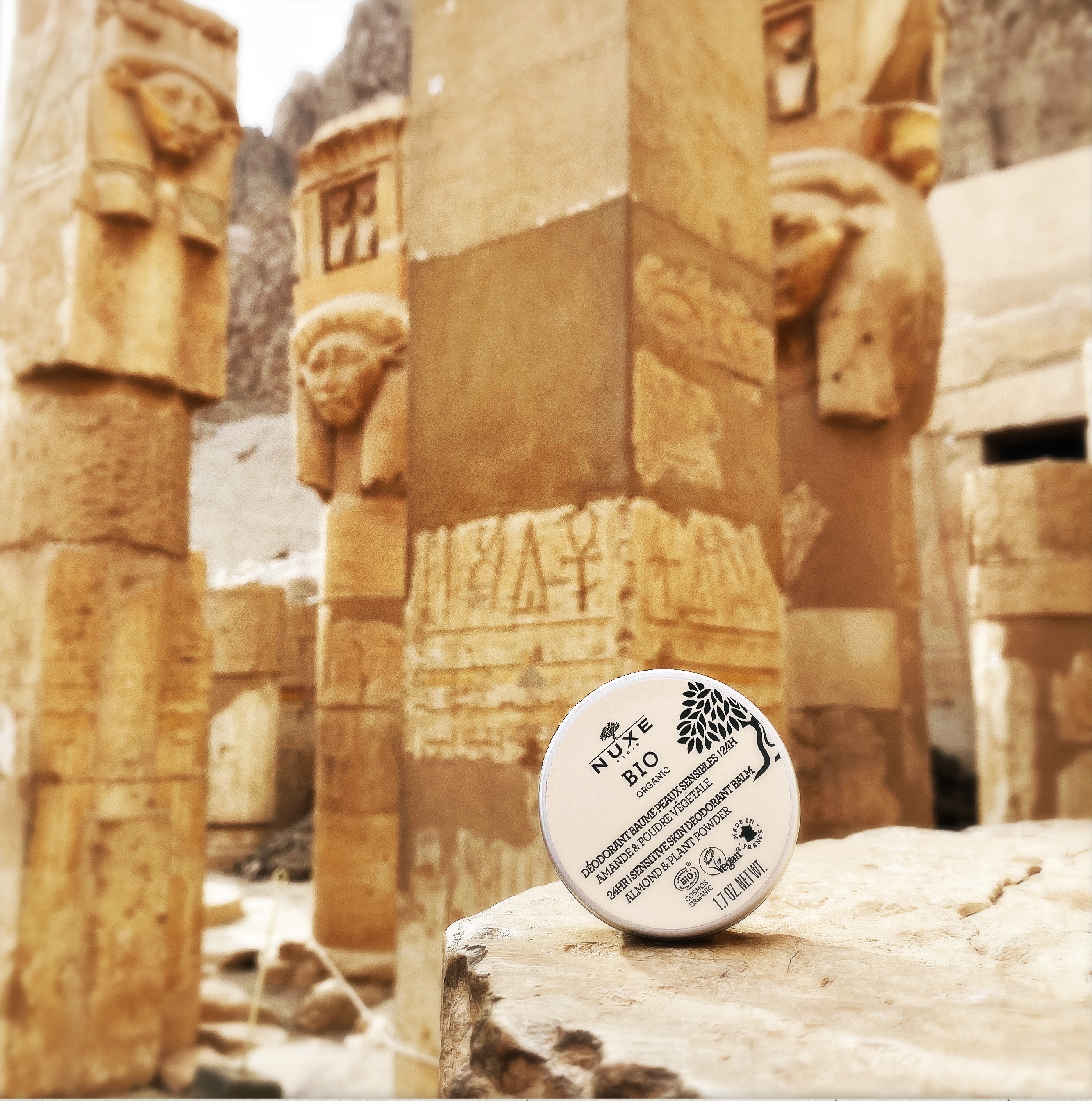En partant pour la Vallée des Rois, j’ai mis dans mon sac un produit que j’ai reçu de Nuxe, il y a quelques semaines déjà: son déodorant solide ou plus précisément son déodorant baume peaux sensibles! Je trouve cette idée excellente: il s’applique hyper facilement au doigt, il ne prend pas de place, il sent super bon la fleur d’oranger, le contenant est recyclable, il ne laisse pas de trace sur les habits et en plus il est efficace!