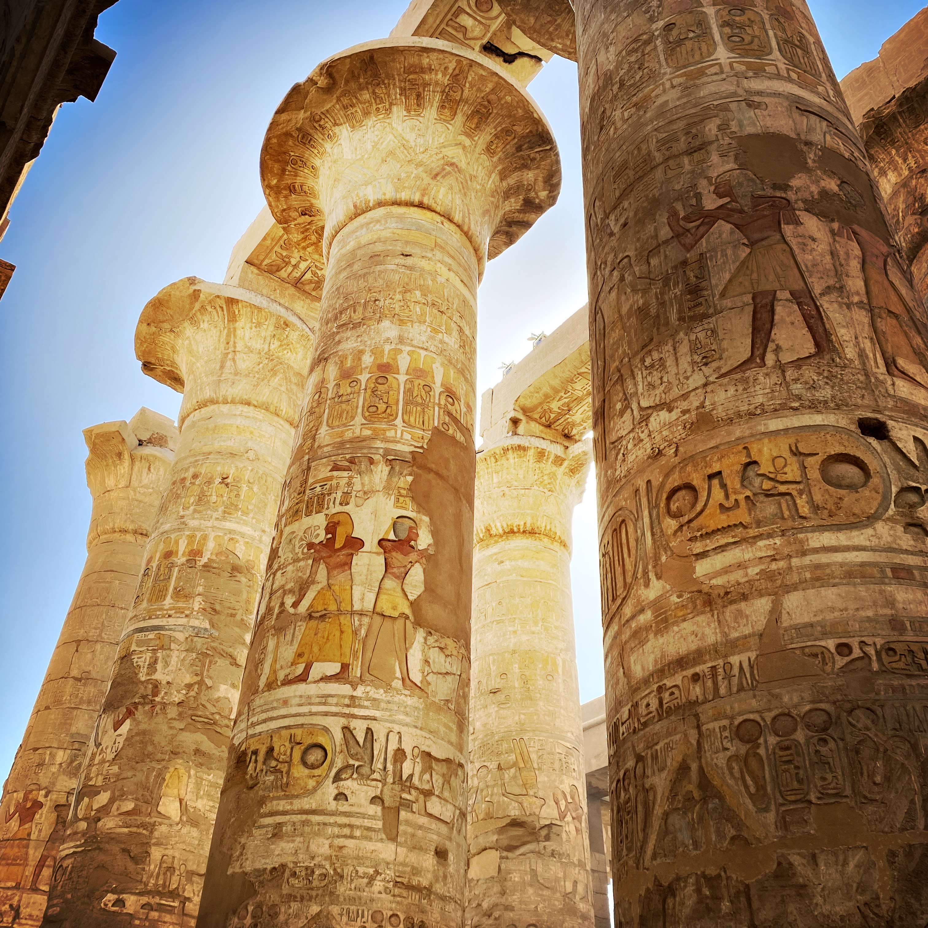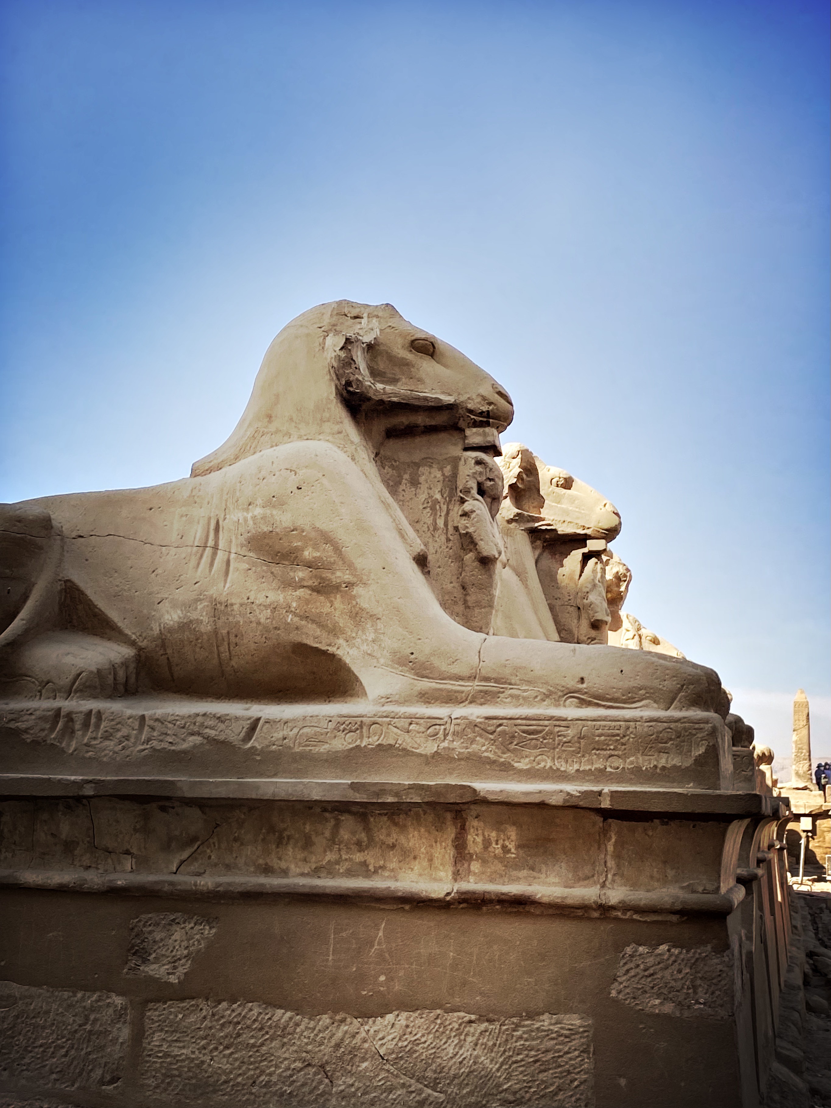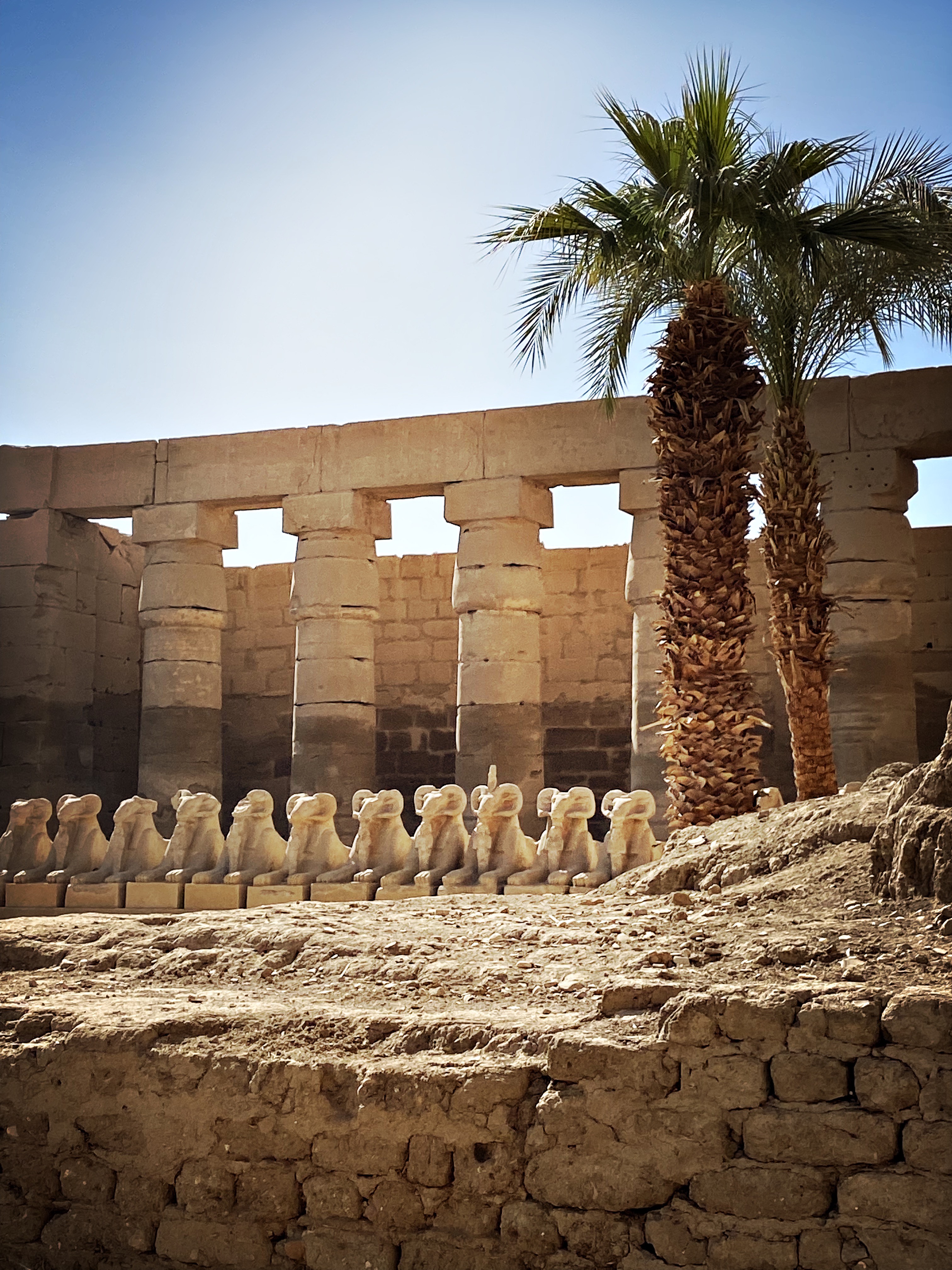 Karnak comprend un vaste ensemble de ruines de temples, de chapelles, de pylônes et autres bâtiments sur la rive Est du Nil. Aujourd’hui le site est en ruine, car les hommes d’Alexandre le Grand sont venus se servir pour construire Alexandrie. C’était bien pratique de trouver du matériel prêt à l’emploi.